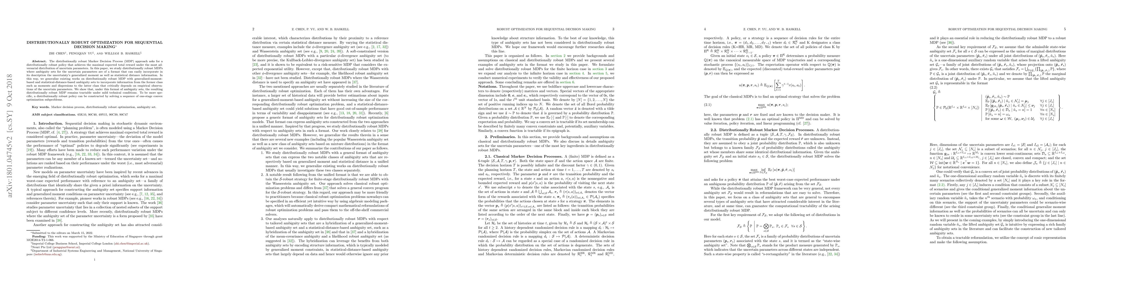 This paper develops a distributionally robust Markov Decision Process (MDP) framework that incorporates both generalized moment and statistical distance information for uncertain parameters. It shows that under certain ambiguity sets, the resulting robust MDP remains tractable, allowing for the construction of robust policies via convex optimization.