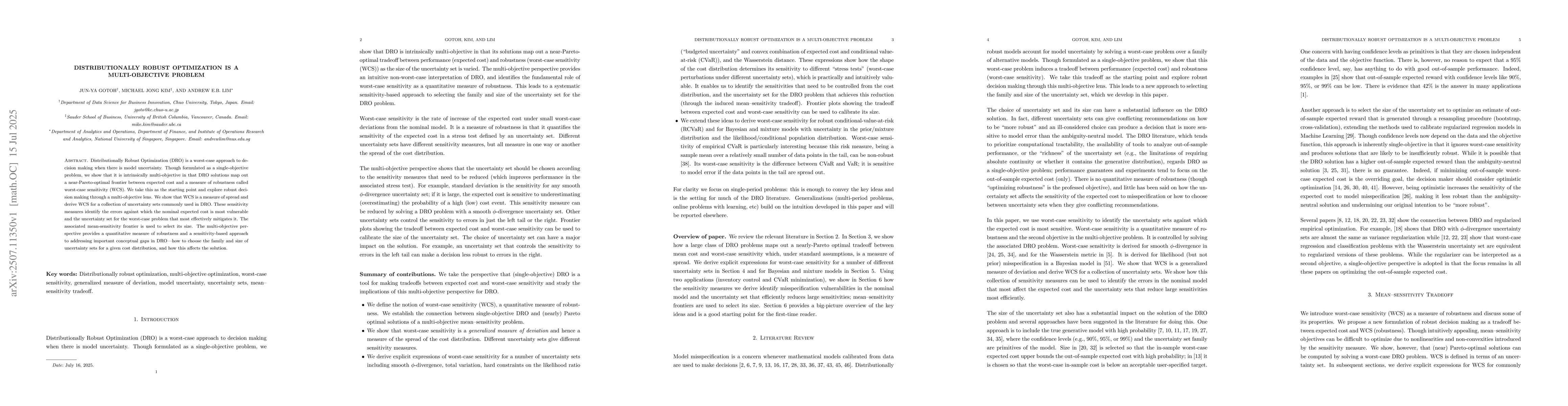 Distributionally Robust Optimization (DRO) is a worst-case approach to decision making when there is model uncertainty. Though formulated as a single-objective problem, we show that it is intrinsically multi-objective in that DRO solutions map out a near-Pareto-optimal frontier between expected cost and a measure of robustness called worst-case sensitivity (WCS). We take this as the starting point and explore robust decision making through a multi-objective lens. We show that WCS is a measure of spread and derive WCS for a collection of uncertainty sets commonly used in DRO. These sensitivity measures identify the errors against which the nominal expected cost is most vulnerable and the uncertainty set for the worst-case problem that most effectively mitigates it. The associated mean-sensitivity frontier is used to select its size. The multi-objective perspective provides a quantitative measure of robustness and a sensitivity-based approach to addressing important conceptual gaps in DRO -- how to choose the family and size of uncertainty sets for a given cost distribution, and how this affects the solution.