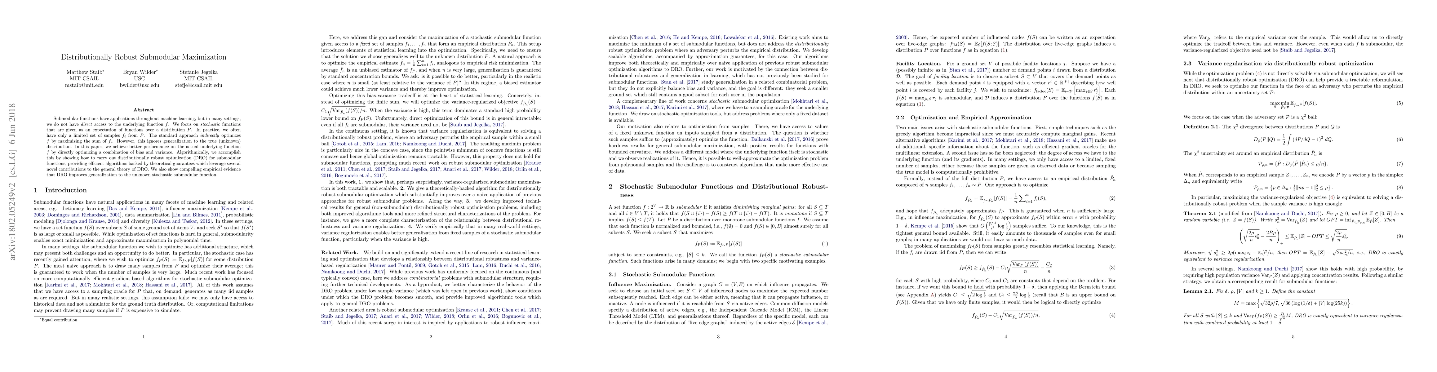 Submodular functions have applications throughout machine learning, but in many settings, we do not have direct access to the underlying function $f$. We focus on stochastic functions that are given as an expectation of functions over a distribution $P$. In practice, we often have only a limited set of samples $f_i$ from $P$. The standard approach indirectly optimizes $f$ by maximizing the sum of $f_i$. However, this ignores generalization to the true (unknown) distribution. In this paper, we achieve better performance on the actual underlying function $f$ by directly optimizing a combination of bias and variance. Algorithmically, we accomplish this by showing how to carry out distributionally robust optimization (DRO) for submodular functions, providing efficient algorithms backed by theoretical guarantees which leverage several novel contributions to the general theory of DRO. We also show compelling empirical evidence that DRO improves generalization to the unknown stochastic submodular function.