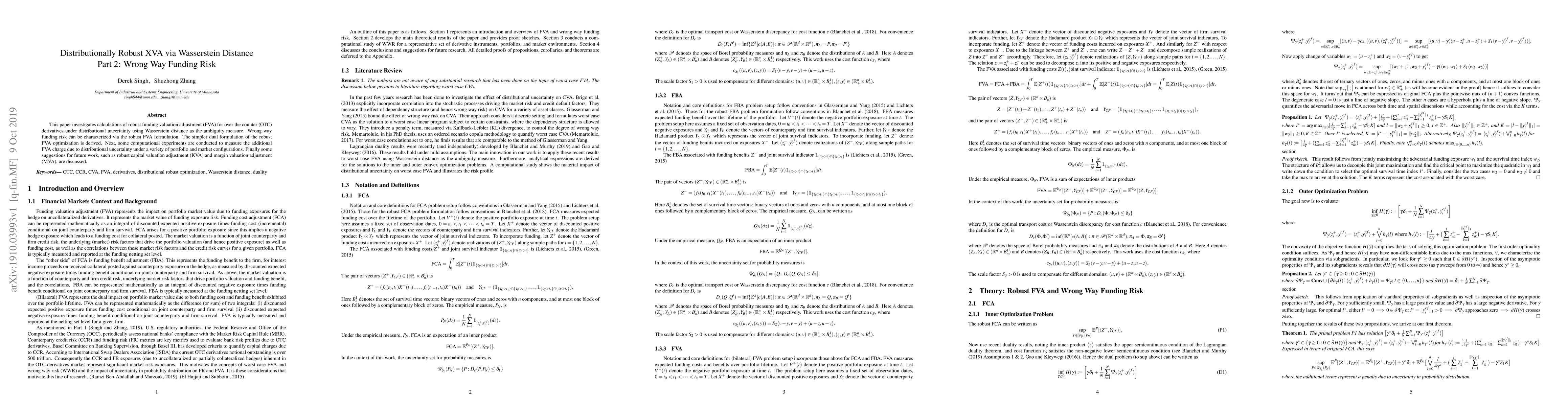 This paper investigates calculations of robust funding valuation adjustment (FVA) for over the counter (OTC) derivatives under distributional uncertainty using Wasserstein distance as the ambiguity measure. Wrong way funding risk can be characterized via the robust FVA formulation. The simpler dual formulation of the robust FVA optimization is derived. Next, some computational experiments are conducted to measure the additional FVA charge due to distributional uncertainty under a variety of portfolio and market configurations. Finally some suggestions for future work, such as robust capital valuation adjustment (KVA) and margin valuation adjustment (MVA), are discussed.
