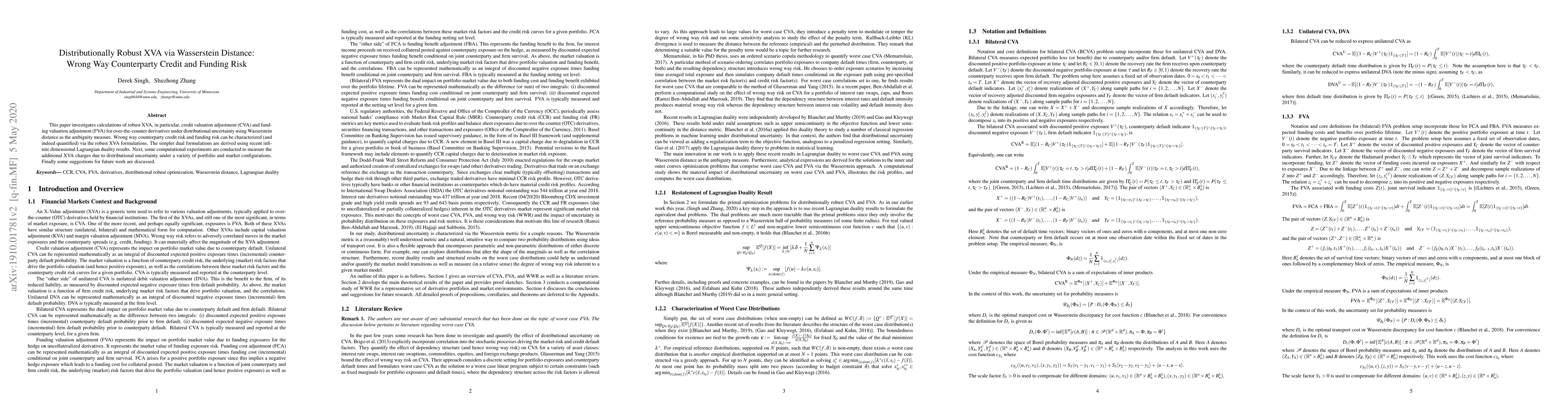 The paper presents dual formulations for robust CVA and FVA using Wasserstein distance, providing a novel approach to quantify distributional model risk and wrong-way risk for OTC derivatives.