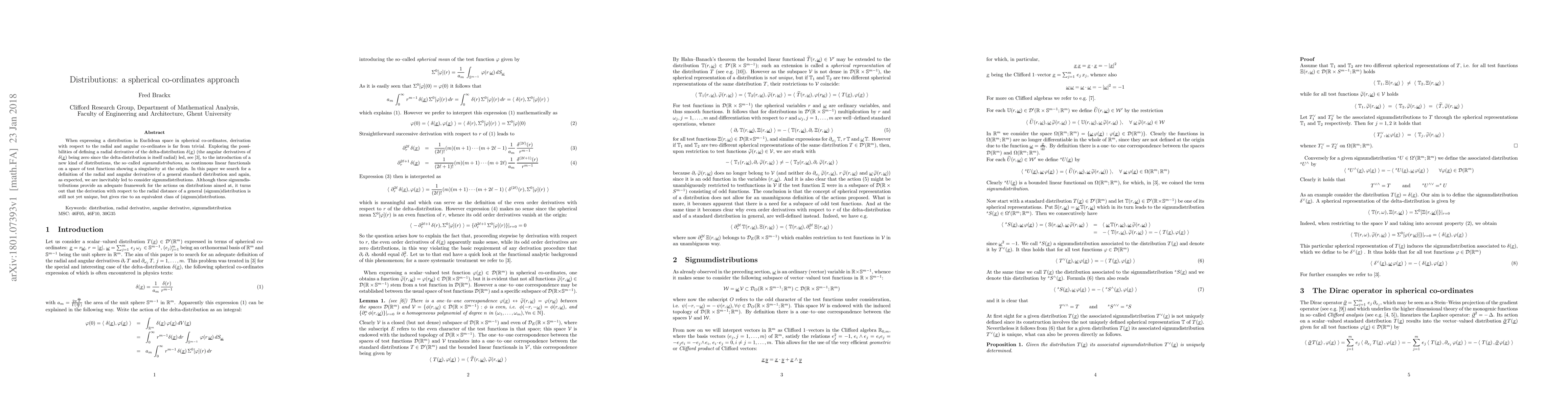 When expressing a distribution in Euclidean space in spherical co-ordinates, derivation with respect to the radial and angular co-ordinates is far from trivial. Exploring the possibilities of defining a radial derivative of the delta-distribution (its angular derivatives being zero) led to the introduction of a new kind of distributions, the so-called signumdistributions, as continuous linear functionals on a space of test functions showing a singularity at the origin. In this paper we search for a definition of the radial and angular derivatives of a general standard distribution and again, as expected, we are inevitably led to consider signumdistributions. Although these signumdistributions provide an adequate framework for the actions on distributions aimed at, it turns out that the derivation with respect to the radial distance of a general (signum)distribution is still not yet unique, but gives rise to an equivalent class of (signum)distributions.