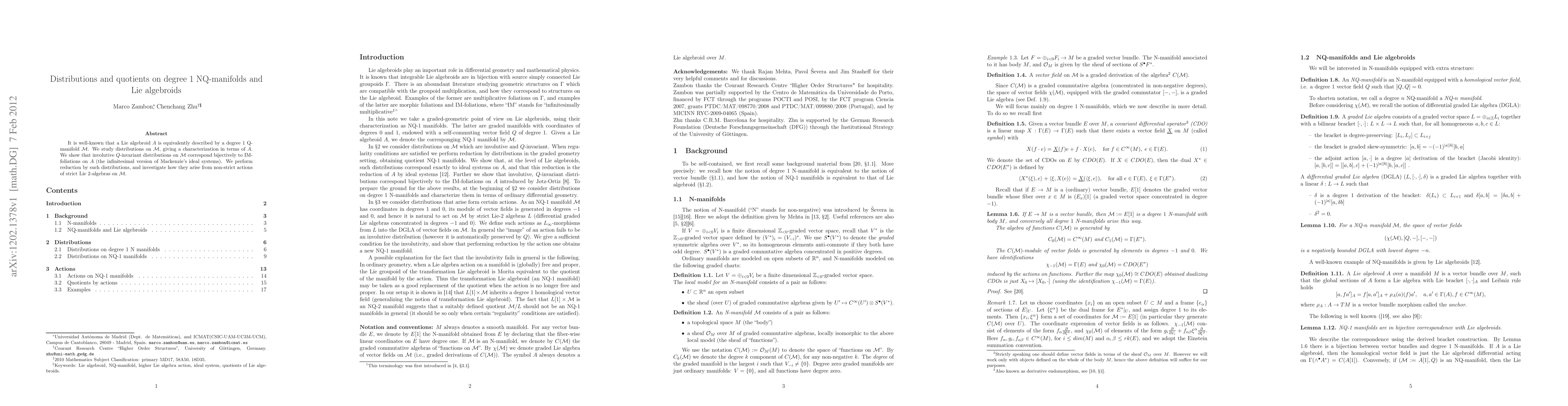 It is well-known that a Lie algebroid A is equivalently described by a degree 1 Q-manifold M. We study distributions on M, giving a characterization in terms of A. We show that involutive Q-invariant distributions on M correspond bijectively to IM-foliations on A (the infinitesimal version of Mackenzie's ideal systems). We perform reduction by such distributions, and investigate how they arise from non-strict actions of strict Lie 2-algebras on M.