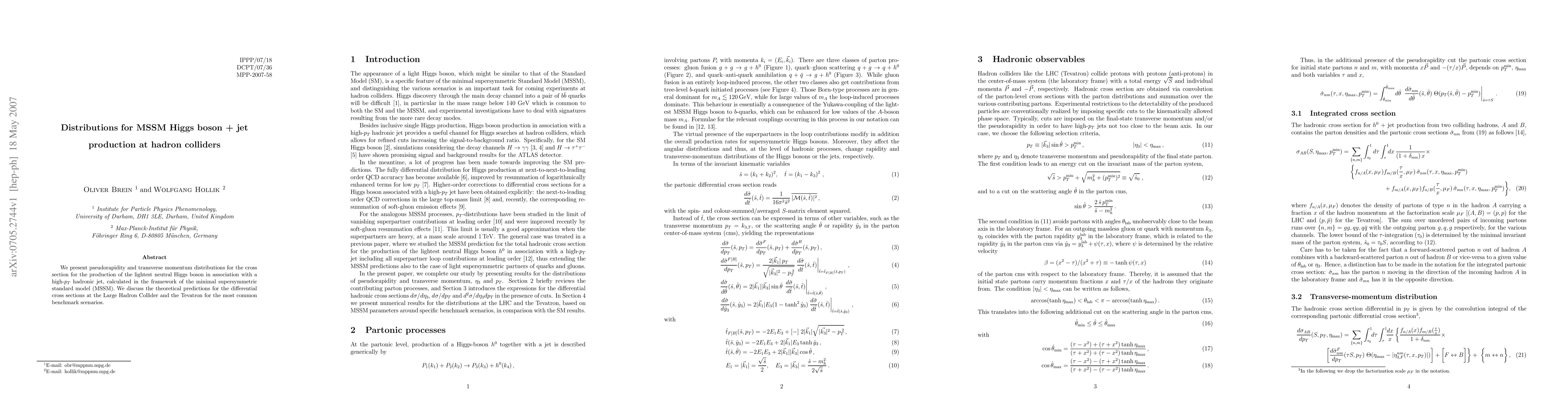 This paper provides pseudorapidity and transverse momentum distributions for MSSM Higgs boson plus jet production at hadron colliders, focusing on the lightest neutral Higgs boson. It discusses theoretical predictions for the differential cross sections at the LHC and Tevatron under common benchmark scenarios.