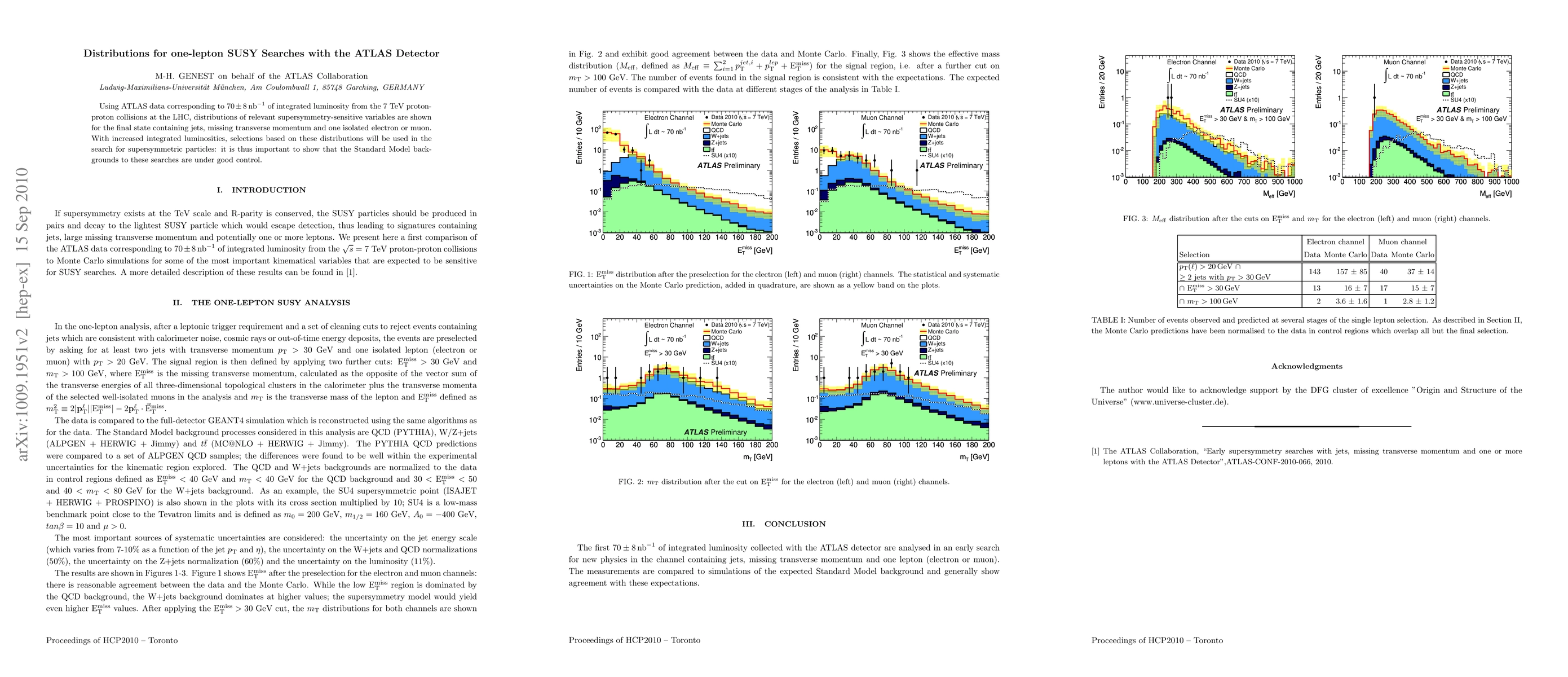 Researchers used ATLAS data to study distributions for one-lepton SUSY searches, showing that Standard Model backgrounds are under good control with increased luminosity. This work will help improve the sensitivity of future supersymmetry searches at the LHC.