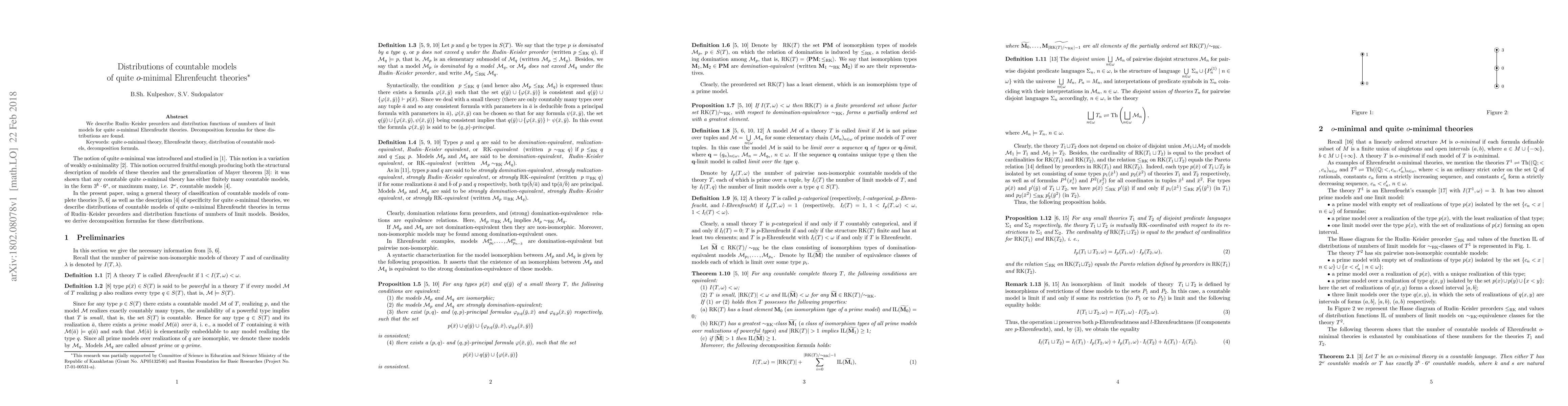 Summary: This paper investigates the Rudin-Keisler preorders and distribution functions of countable models for quite o-minimal Ehrenfeucht theories, and provides decomposition formulas for these distributions.