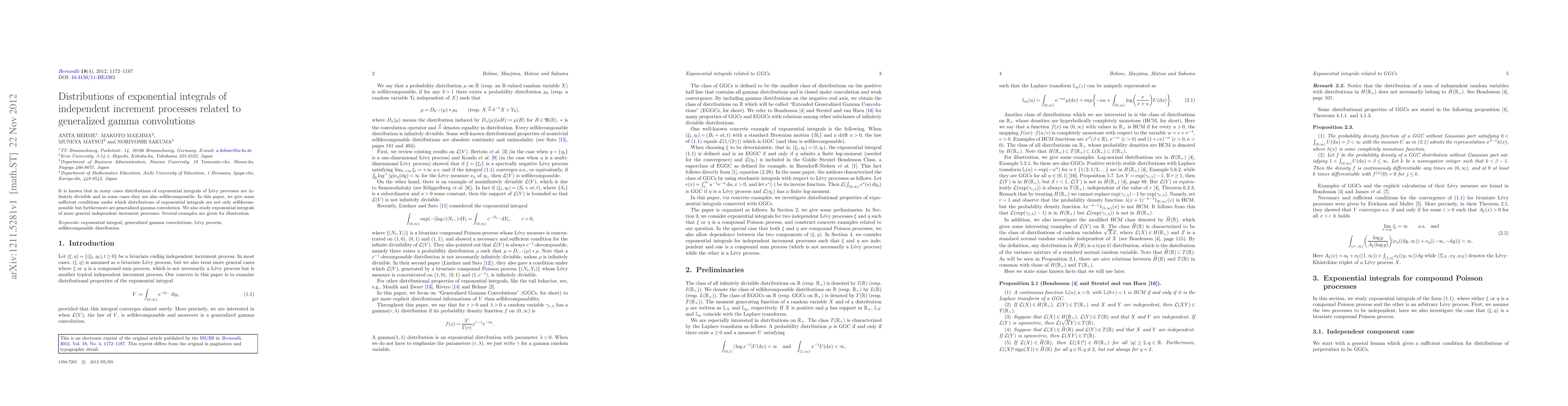It is known that in many cases distributions of exponential integrals of Levy processes are infinitely divisible and in some cases they are also selfdecomposable. In this paper, we give some sufficient conditions under which distributions of exponential integrals are not only selfdecomposable but furthermore are generalized gamma convolution. We also study exponential integrals of more general independent increment processes. Several examples are given for illustration.