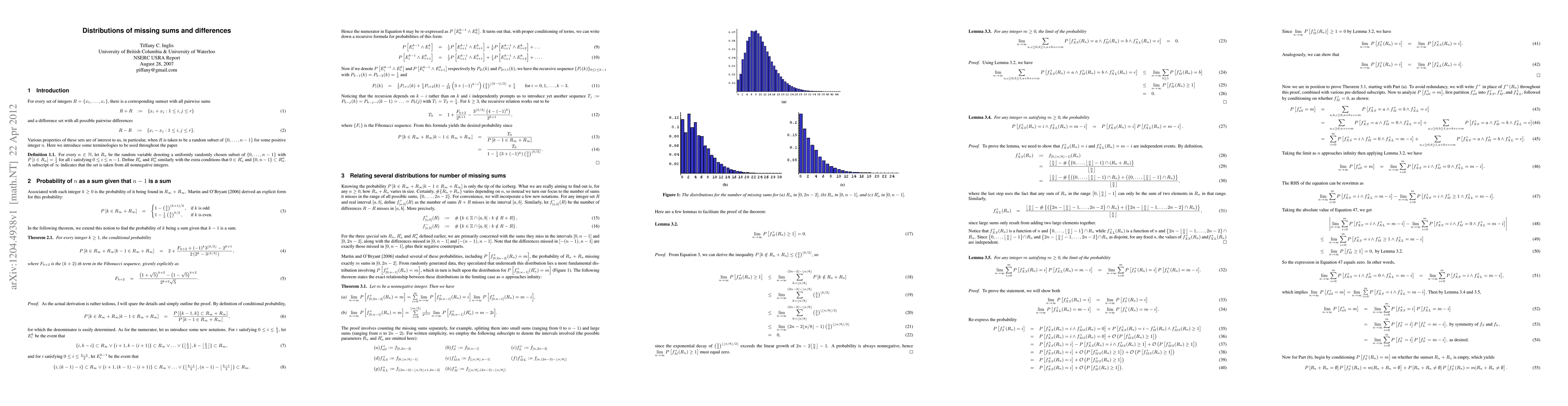 This paper explores the statistical distributions associated with missing sums and differences, aiming to understand their underlying patterns and implications for data analysis and interpretation. The findings provide insights into how to account for and estimate missing values in datasets.