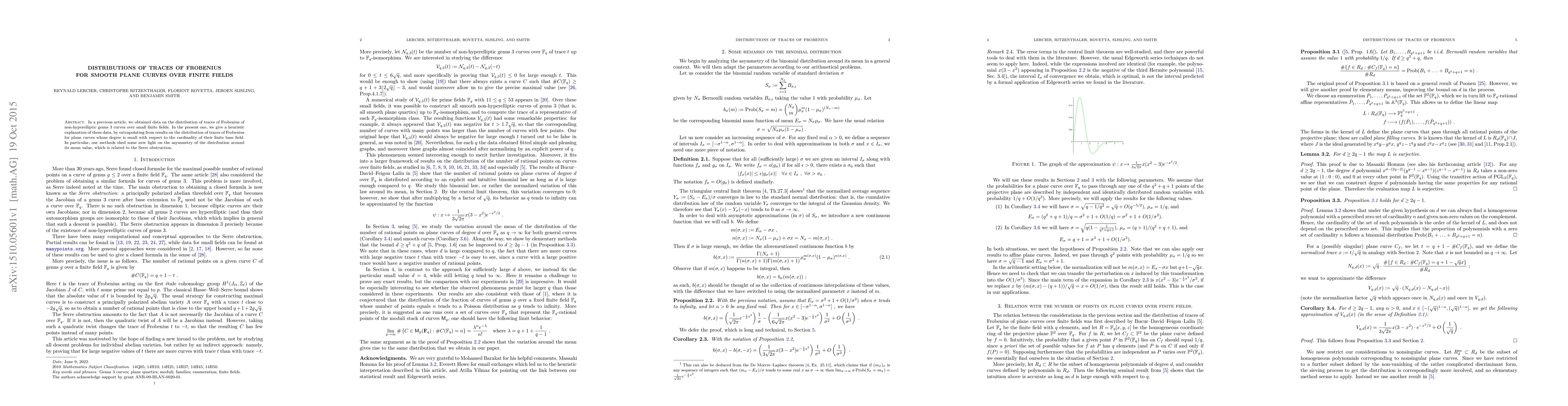 Summary: This paper provides a heuristic explanation for the distribution of traces of Frobenius for genus 3 non-hyperelliptic curves over finite fields, using results from smaller degree plane curves, and highlights the asymmetry in their distribution linked to the Serre obstruction.