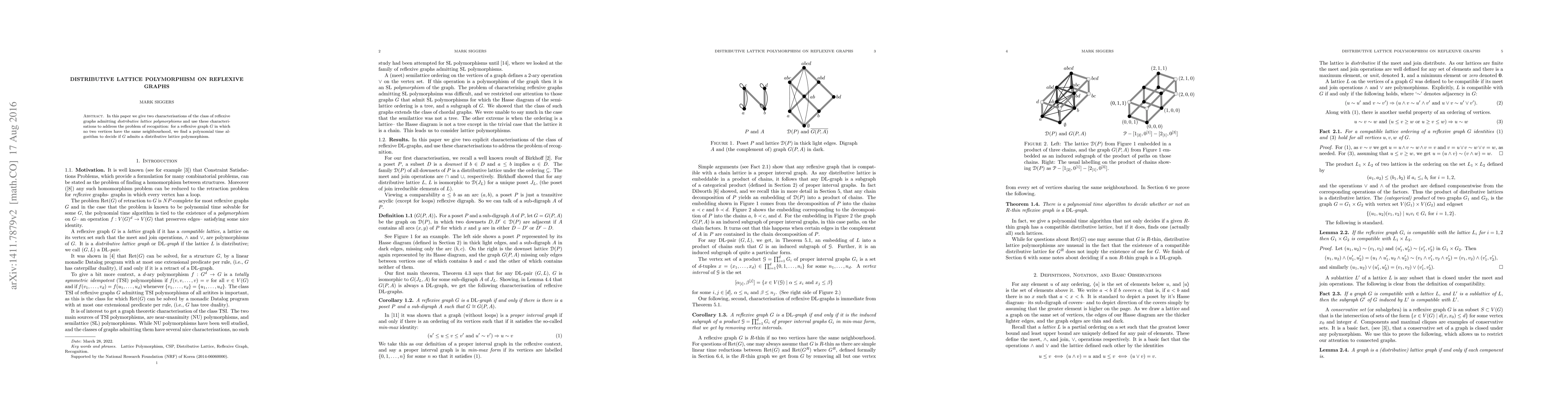 This paper characterizes reflexive graphs that allow distributive lattice polymorphisms and presents a polynomial-time algorithm to determine if such a graph, where no two vertices share the same neighborhood, possesses a distributive lattice polymorphism.