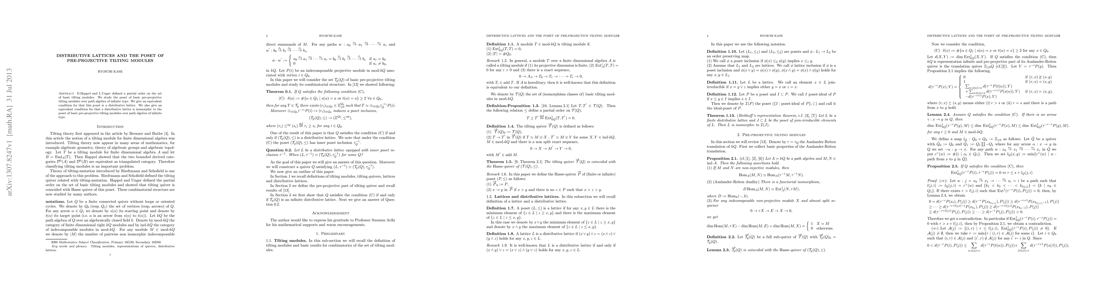 This paper explores the poset of basic pre-projective tilting modules over path algebras of infinite type, providing conditions for this poset to form a distributive lattice. It also establishes equivalent conditions for a distributive lattice to be isomorphic to such a poset in representation infinite type.