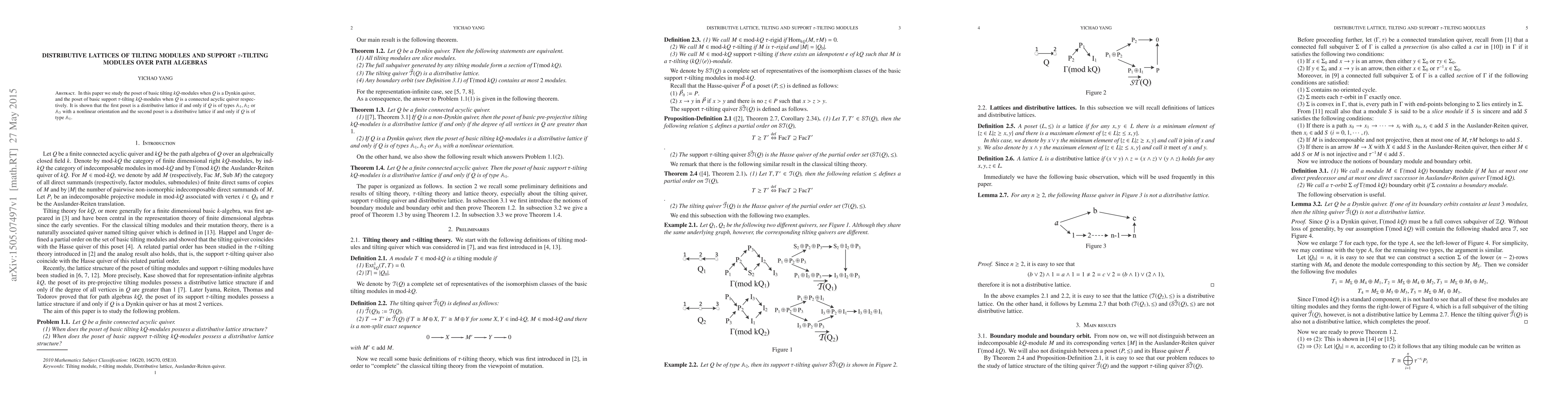 This paper explores the posets of basic tilting and support $\tau$-tilting modules over path algebras for Dynkin and connected acyclic quivers. It concludes that the poset of tilting modules forms a distributive lattice for certain nonlinear orientations of $\mathbb{A}_{2}$ and $\mathbb{A}_{3}$, while the poset of support $\tau$-tilting modules is a distributive lattice for $\mathbb{A}_{1}$.