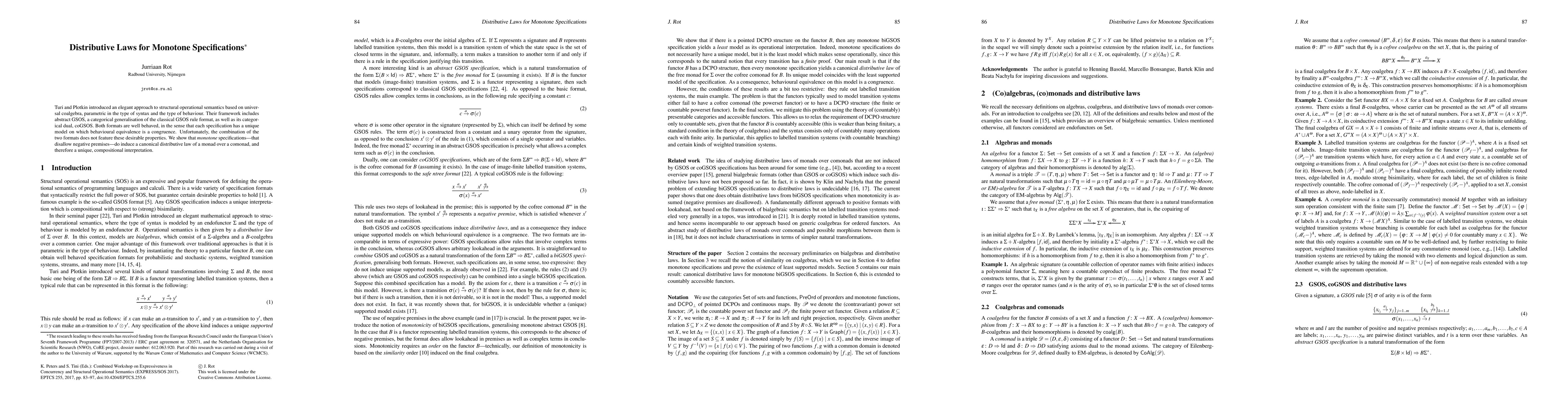 Researchers show that monotone specifications can lead to a unique, compositional interpretation due to a distributive law of a monad over a comonad, resolving the limitations of Turi and Plotkin's framework.