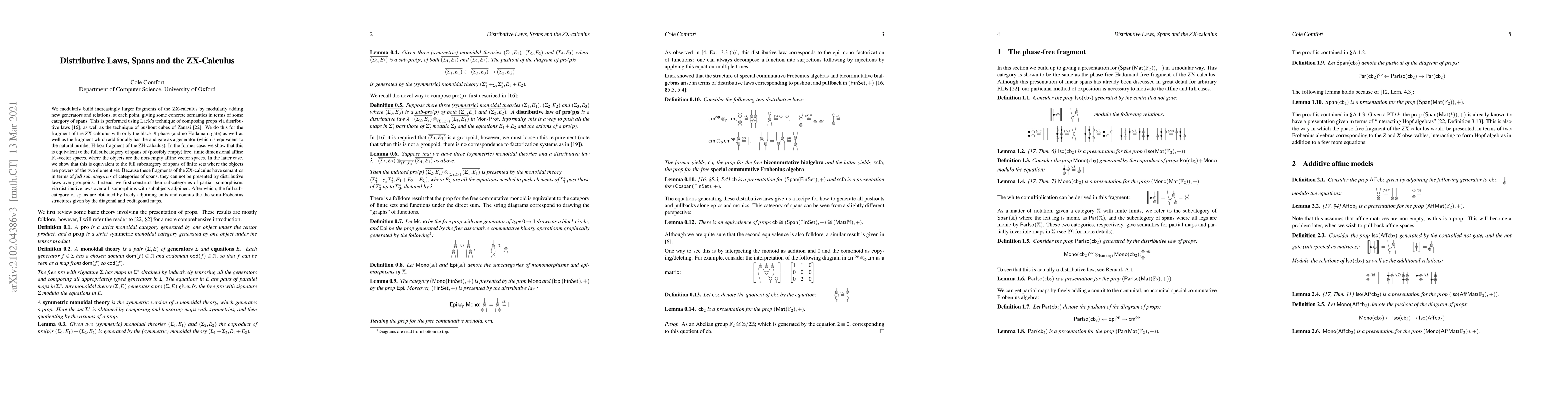 We modularly build increasingly larger fragments of the ZX-calculus by modularly adding new generators and relations, at each point, giving some concrete semantics in terms of some category of spans. This is performed using Lack's technique of composing props via distributive laws, as well as the technique of pushout cubes of Zanasi. We do this for the fragment of the ZX-calculus with only the black $\pi$-phase (and no Hadamard gate) as well as well as the fragment which additionally has the and gate as a generator (which is equivalent to the natural number H-box fragment of the ZH-calculus). In the former case, we show that this is equivalent to the full subcategory of spans of (possibly empty) free, finite dimensional affine $\mathbb F_2$-vector spaces, where the objects are the non-empty affine vector spaces. In the latter case, we show that this is equivalent to the full subcategory of spans of finite sets where the objects are powers of the two element set. Because these fragments of the ZX-calculus have semantics in terms of full subcategories of categories of spans, they can not be presented by distributive laws over groupoids. Instead, we first construct their subcategories of partial isomorphisms via distributive laws over all isomorphims with subobjects adjoined. After which, the full subcategory of spans are obtained by freely adjoining units and counits the the semi-Frobenius structures given by the diagonal and codiagonal maps.