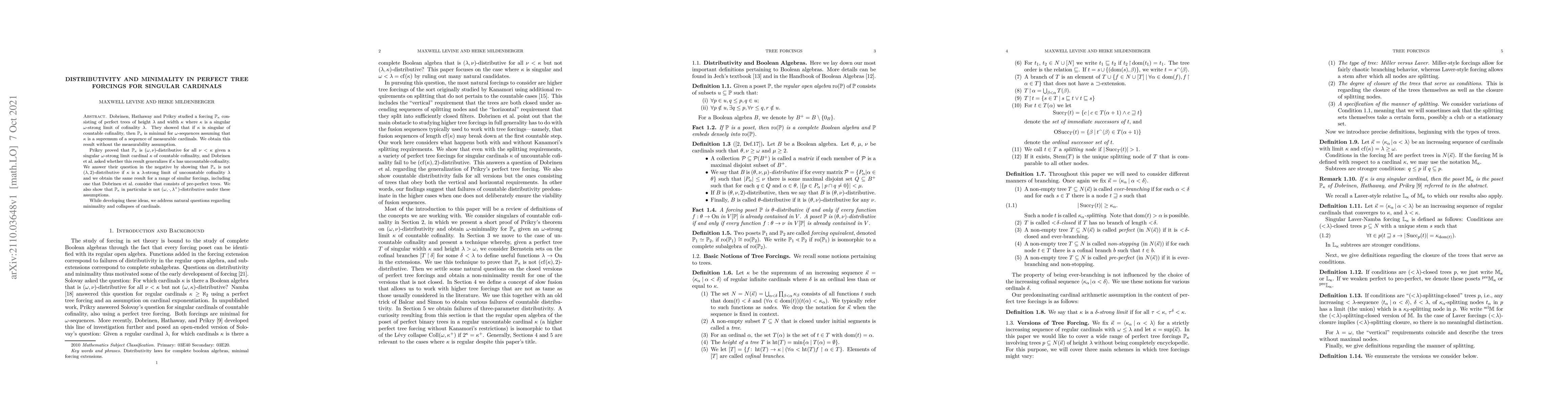 This paper explores perfect tree forcings $\mathbb{P}_\kappa$ for singular cardinals $\kappa$, demonstrating that $\mathbb{P}_\kappa$ is minimal for $\omega$-sequences without requiring $\kappa$ to be measurable. It also shows that $\mathbb{P}_\kappa$ fails to be $(\lambda,2)$-distributive when $\kappa$ is a $\lambda$-strong limit of cofinality $\lambda$, refuting generalizations of Prikry's distributivity results for uncountable cofinalities.