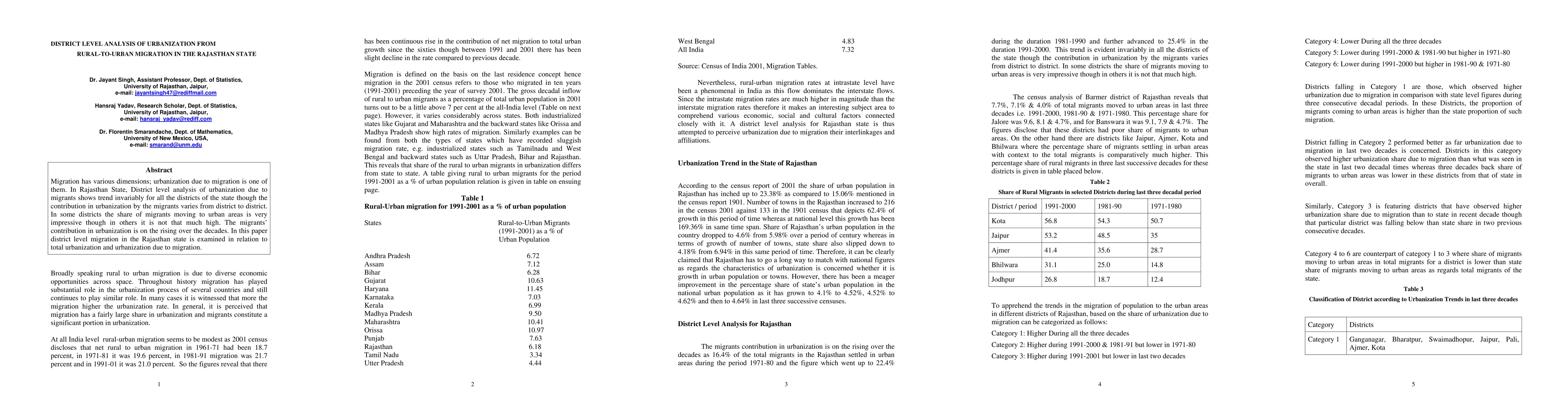 This paper analyzes the impact of rural-to-urban migration on urbanization at the district level in Rajasthan State, revealing varying contributions across districts, with an overall trend of increasing migrant influence on urbanization over the decades.