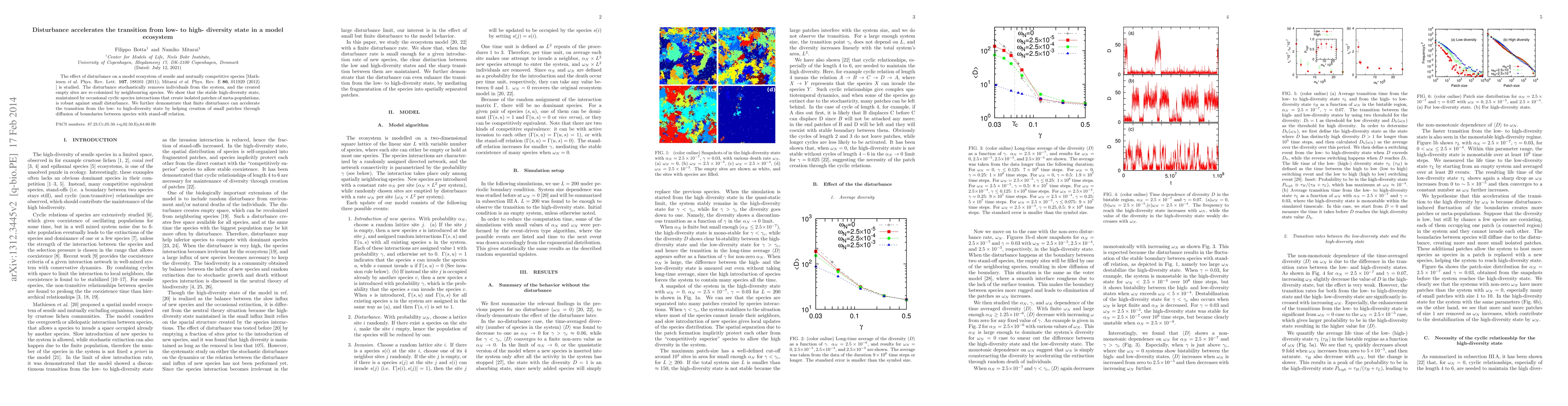 This study investigates how disturbances in a model ecosystem of competing species can accelerate the transition from low to high diversity. Disturbances remove individuals and allow neighboring species to colonize, creating small patches that enhance diversity, ultimately leading to a stable high-diversity state.
