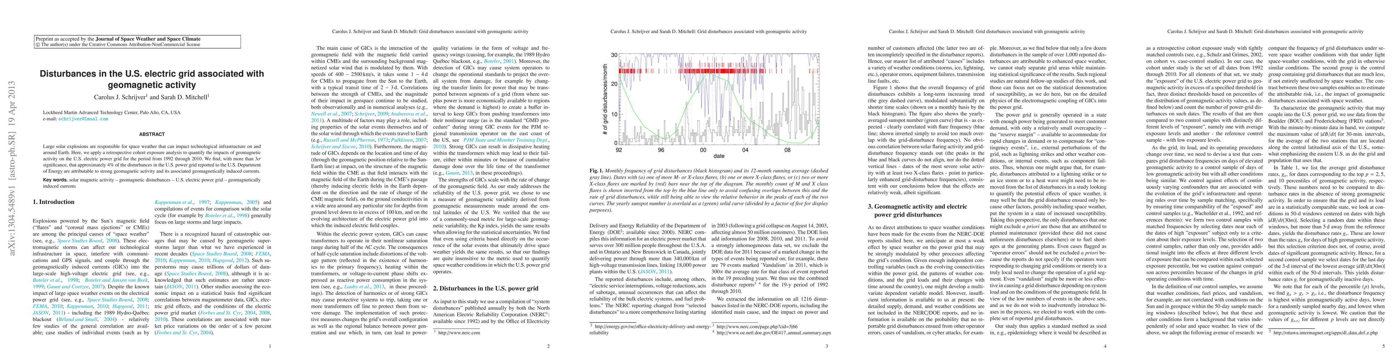 This study quantifies the impact of geomagnetic activity on the U.S. electric grid from 1992 to 2010, finding that about 4% of reported disturbances are attributable to strong geomagnetic activity and its induced currents. The analysis uses retrospective cohort exposure methods to establish this link.