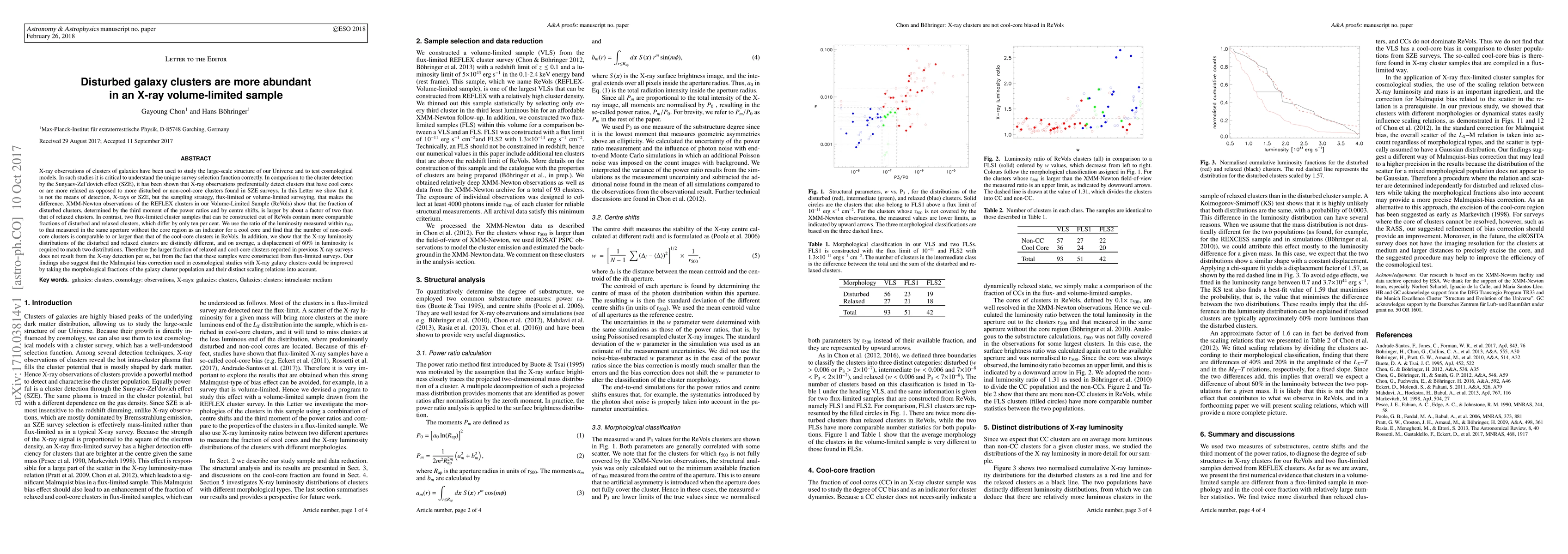We present first strong observational evidence that the X-ray cool-core bias or the apparent bias in the abundance of relaxed clusters is absent in our REFLEX volume-limited sample (ReVols). We show that these previously observed biases are due to the survey selection method such as for an flux-limited survey, and are not due to the inherent nature of X-ray selection. We also find that the X-ray luminosity distributions of clusters for the relaxed and for the disturbed clusters are distinct and a displacement of approximately 60 per cent is required to match two distributions. Our results suggest that to achieve more precise scaling relation one may need to take the morphology of clusters and their fractional abundance into account.