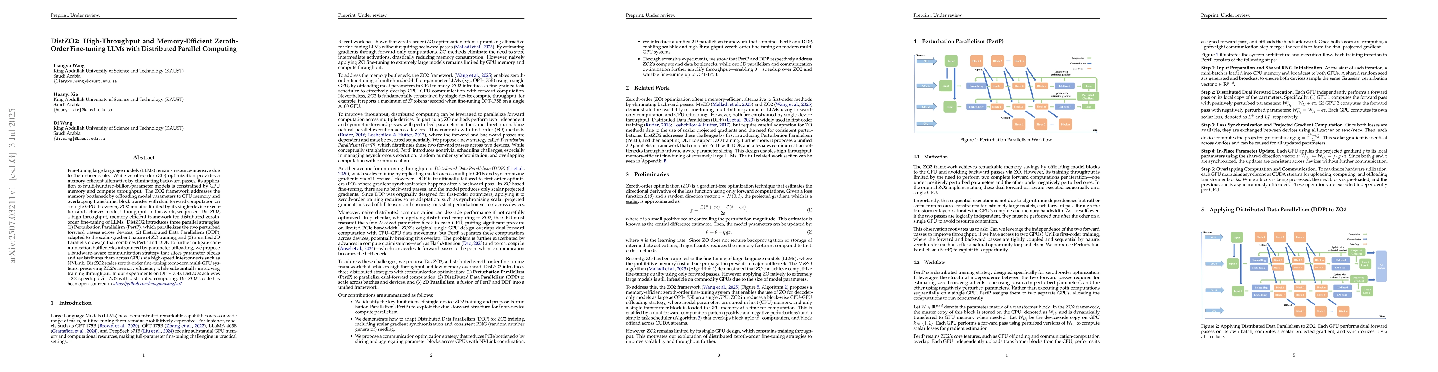 Fine-tuning large language models (LLMs) remains resource-intensive due to their sheer scale. While zeroth-order (ZO) optimization provides a memory-efficient alternative by eliminating backward passes, its application to multi-hundred-billion-parameter models is constrained by GPU memory and compute throughput. The ZO2 framework addresses the memory bottleneck by offloading model parameters to CPU memory and overlapping transformer block transfer with dual forward computation on a single GPU. However, ZO2 remains limited by its single-device execution and achieves modest throughput. In this work, we present DistZO2, a high-throughput, memory-efficient framework for distributed zeroth-order fine-tuning of LLMs. DistZO2 introduces three parallel strategies: (1) Perturbation Parallelism (PertP), which parallelizes the two perturbed forward passes across devices; (2) Distributed Data Parallelism (DDP), adapted to the scalar-gradient nature of ZO training; and (3) a unified 2D Parallelism design that combines PertP and DDP. To further mitigate communication bottlenecks introduced by parameter offloading, we propose a hardware-aware communication strategy that slices parameter blocks and redistributes them across GPUs via high-speed interconnects such as NVLink. DistZO2 scales zeroth-order fine-tuning to modern multi-GPU systems, preserving ZO2's memory efficiency while substantially improving training throughput. In our experiments on OPT-175B, DistZO2 achieves a 3x speedup over ZO2 with distributed computing. DistZO2's code has been open-sourced in https://github.com/liangyuwang/zo2.