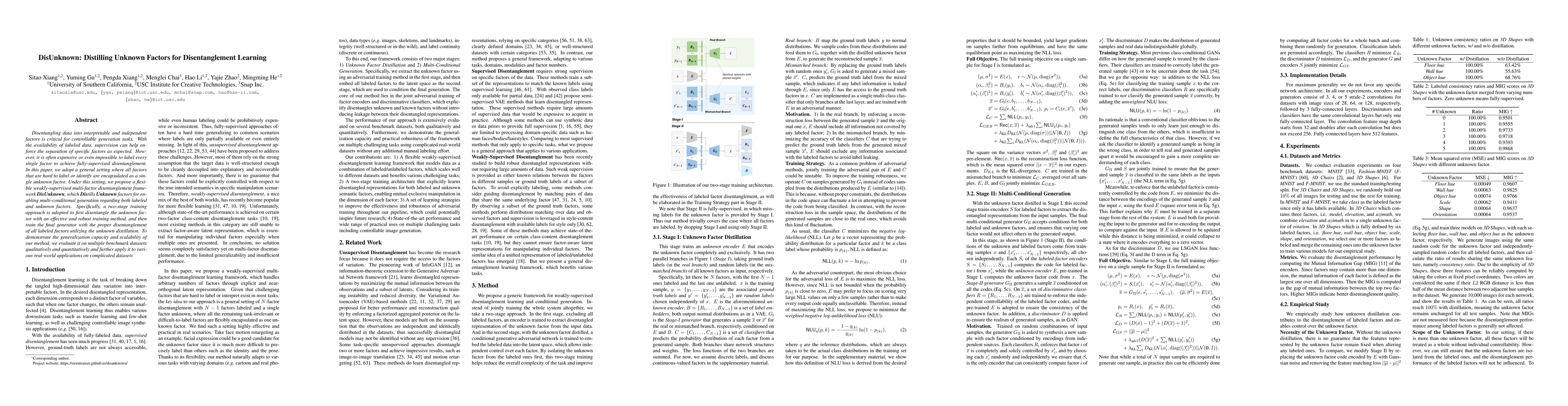 A new method called DisUnknown enables disentanglement learning of data into interpretable factors even when not all factors can be labeled. It achieves this through a two-stage training approach that distills an unknown factor to help train generators with proper disentanglement.