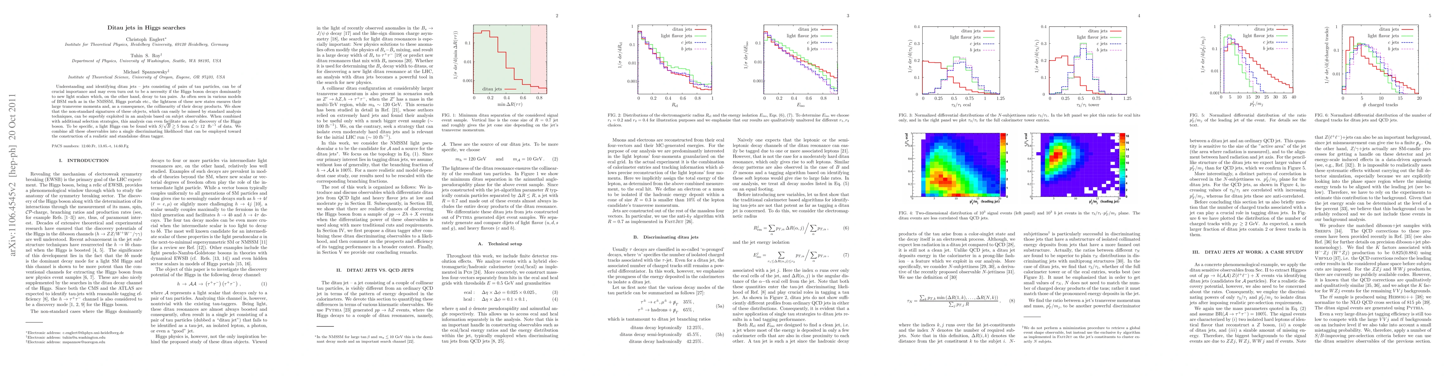 Understanding and identifying ditau jets -- jets consisting of pairs of tau particles, can be of crucial importance and may even turn out to be a necessity if the Higgs boson decays dominantly to new light scalars which, on the other hand, decay to tau pairs. As often seen in various models of BSM such as in the NMSSM, Higgs portals etc., the lightness of these new states ensures their large transverse momenta and, as a consequence, the collinearity of their decay products. We show that the non-standard signatures of these objects, which can easily be missed by standard analysis techniques, can be superbly exploited in an analysis based on subjet observables. When combined with additional selection strategies, this analysis can even facilitate an early discovery of the Higgs boson. To be specific, a light Higgs can be found with $S/\sqrt{B} \gtrsim 5$ from $\mathcal {L} \simeq 12 fb^{-1}$ of data. We combine all these observables into a single discriminating likelihood that can be employed toward the construction of a realistic and standalone ditau tagger.