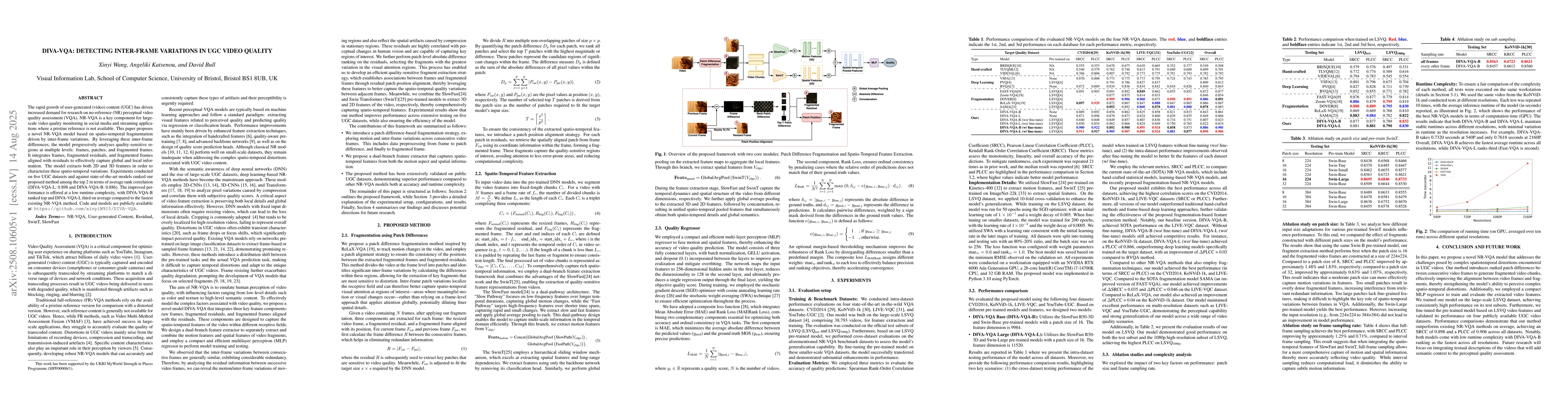 The rapid growth of user-generated (video) content (UGC) has driven increased demand for research on no-reference (NR) perceptual video quality assessment (VQA). NR-VQA is a key component for large-scale video quality monitoring in social media and streaming applications where a pristine reference is not available. This paper proposes a novel NR-VQA model based on spatio-temporal fragmentation driven by inter-frame variations. By leveraging these inter-frame differences, the model progressively analyses quality-sensitive regions at multiple levels: frames, patches, and fragmented frames. It integrates frames, fragmented residuals, and fragmented frames aligned with residuals to effectively capture global and local information. The model extracts both 2D and 3D features in order to characterize these spatio-temporal variations. Experiments conducted on five UGC datasets and against state-of-the-art models ranked our proposed method among the top 2 in terms of average rank correlation (DIVA-VQA-L: 0.898 and DIVA-VQA-B: 0.886). The improved performance is offered at a low runtime complexity, with DIVA-VQA-B ranked top and DIVA-VQA-L third on average compared to the fastest existing NR-VQA method. Code and models are publicly available at: https://github.com/xinyiW915/DIVA-VQA.