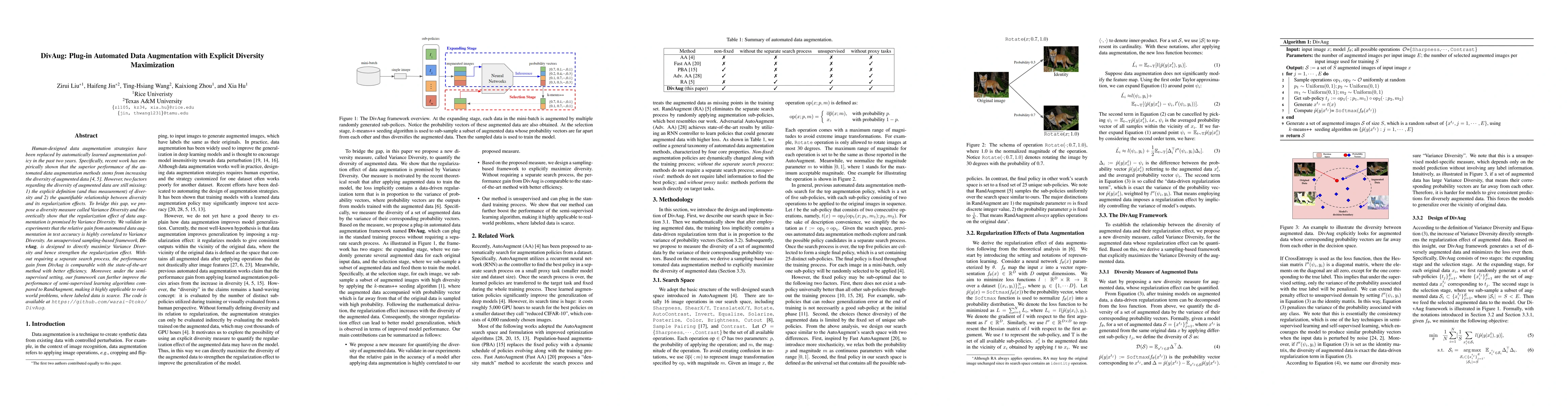 Human-designed data augmentation strategies have been replaced by automatically learned augmentation policy in the past two years. Specifically, recent work has empirically shown that the superior performance of the automated data augmentation methods stems from increasing the diversity of augmented data \cite{autoaug, randaug}. However, two factors regarding the diversity of augmented data are still missing: 1) the explicit definition (and thus measurement) of diversity and 2) the quantifiable relationship between diversity and its regularization effects. To bridge this gap, we propose a diversity measure called Variance Diversity and theoretically show that the regularization effect of data augmentation is promised by Variance Diversity. We validate in experiments that the relative gain from automated data augmentation in test accuracy is highly correlated to Variance Diversity. An unsupervised sampling-based framework, \textbf{DivAug}, is designed to directly maximize Variance Diversity and hence strengthen the regularization effect. Without requiring a separate search process, the performance gain from DivAug is comparable with the state-of-the-art method with better efficiency. Moreover, under the semi-supervised setting, our framework can further improve the performance of semi-supervised learning algorithms compared to RandAugment, making it highly applicable to real-world problems, where labeled data is scarce. The code is available at \texttt{\url{https://github.com/warai-0toko/DivAug}}.