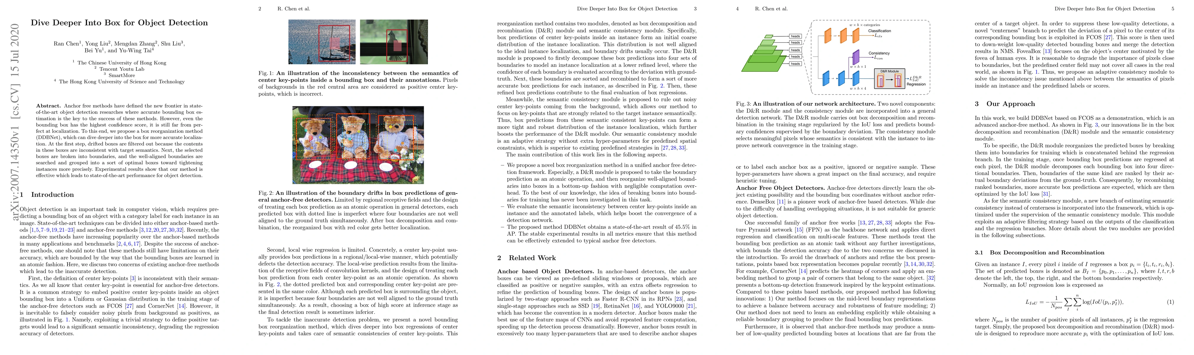 The paper proposes DDBNet, an anchor-free method for improving object detection accuracy by refining bounding box localization. It filters out drifted boxes and reorganizes remaining boxes into tighter, more precise instances, achieving state-of-the-art performance in object detection tasks.