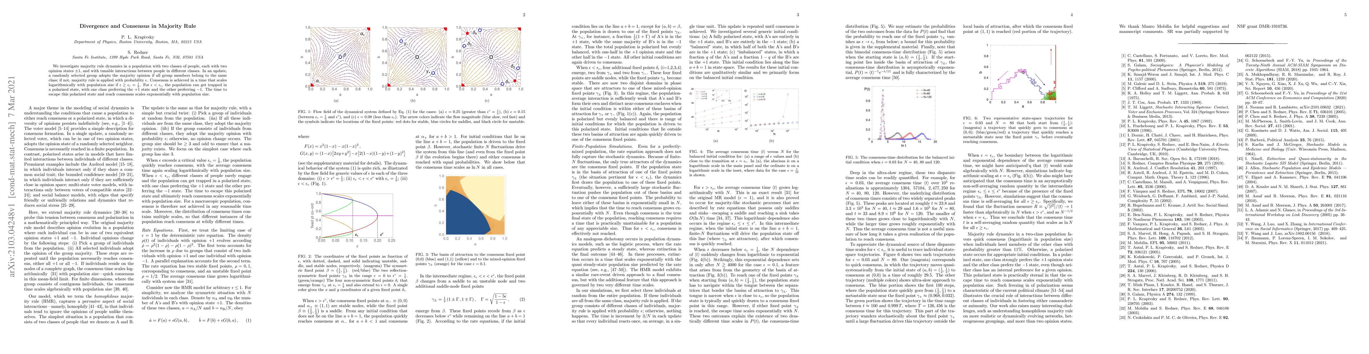 This paper examines majority rule dynamics in a population divided into two classes with tunable inter-class interactions, showing that consensus is achieved logarithmically with population size when inter-class majority rule probability $\epsilon$ exceeds $\epsilon_c = \frac{1}{9}$, while polarization occurs and escapes take exponential time when $\epsilon$ is below this threshold.