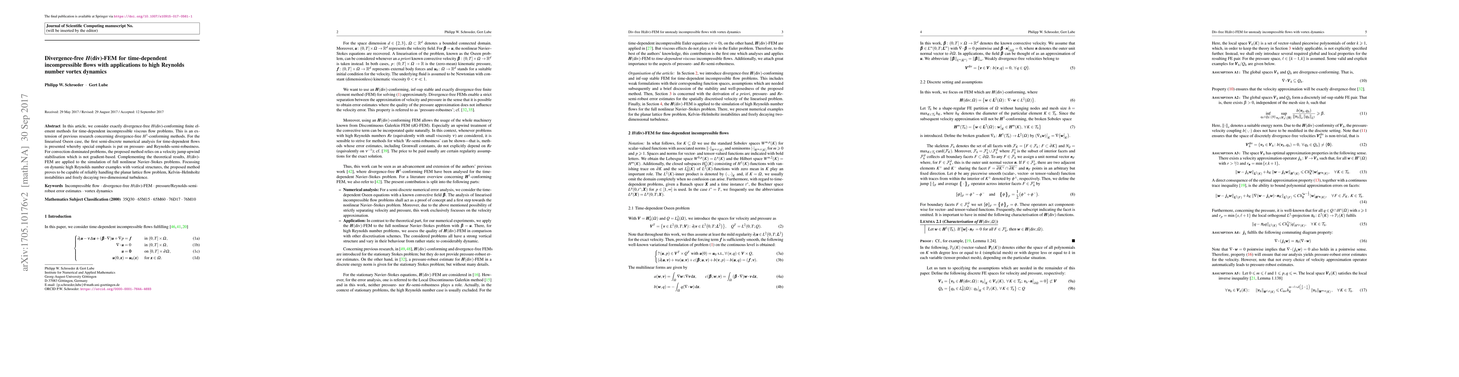 This paper proposes a divergence-free $H$(div)-FEM for time-dependent incompressible flows, extending previous $H^1$-conforming methods. It presents a semi-discrete numerical analysis with emphasis on pressure- and Reynolds-semi-robustness, and applies the method to simulate high Reynolds number vortex dynamics, successfully handling complex flow phenomena.