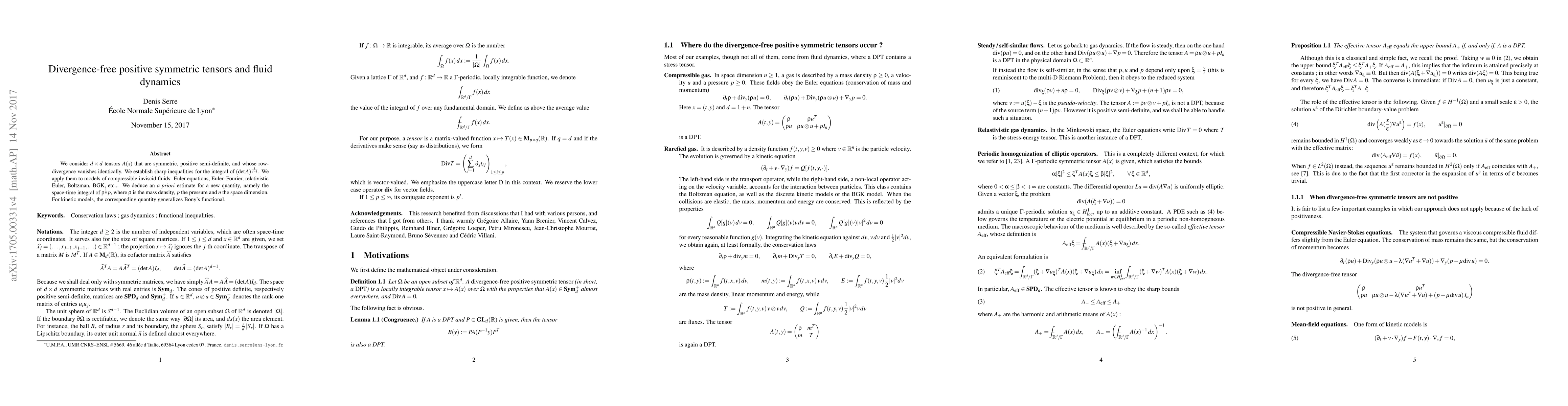 We consider $d\times d$ tensors $A(x)$ that are symmetric, positive semi-definite, and whose row-divergence vanishes identically. We establish sharp inequalities for the integral of $(\det A)^{\frac1{d-1}}$. We apply them to models of compressible inviscid fluids: Euler equations, Euler--Fourier, relativistic Euler, Boltzman, BGK, etc... We deduce an {\em a priori} estimate for a new quantity, namely the space-time integral of $\rho^{\frac1n}p$, where $\rho$ is the mass density, $p$ the pressure and $n$ the space dimension. For kinetic models, the corresponding quantity generalizes Bony's functional.