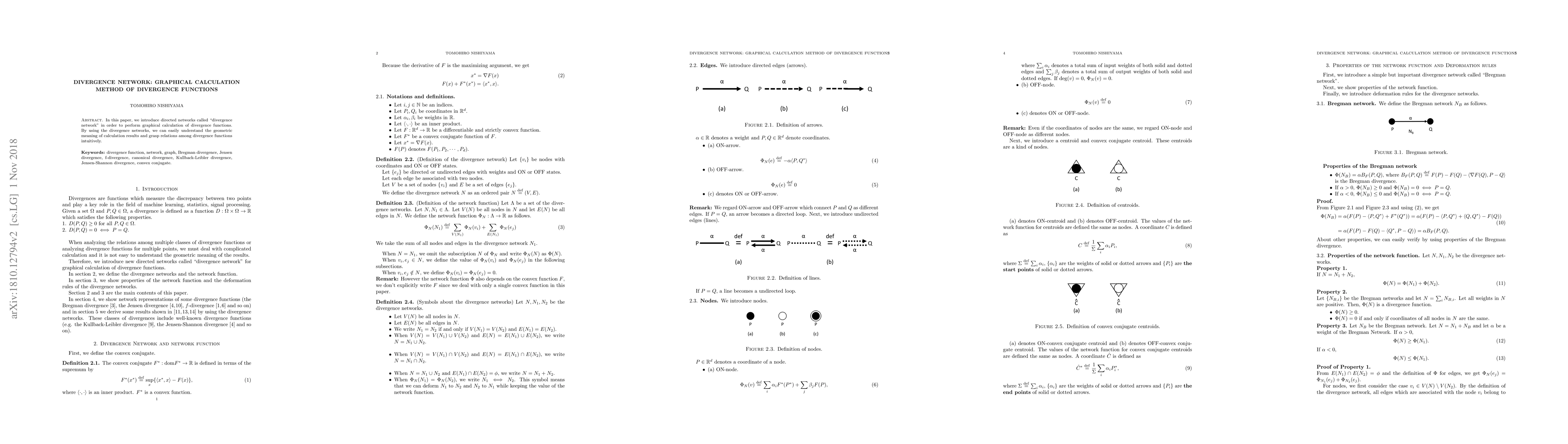 This paper proposes a `divergence network'—a directed network method for graphically calculating divergence functions, enabling intuitive understanding of the geometric implications and relationships among these functions.