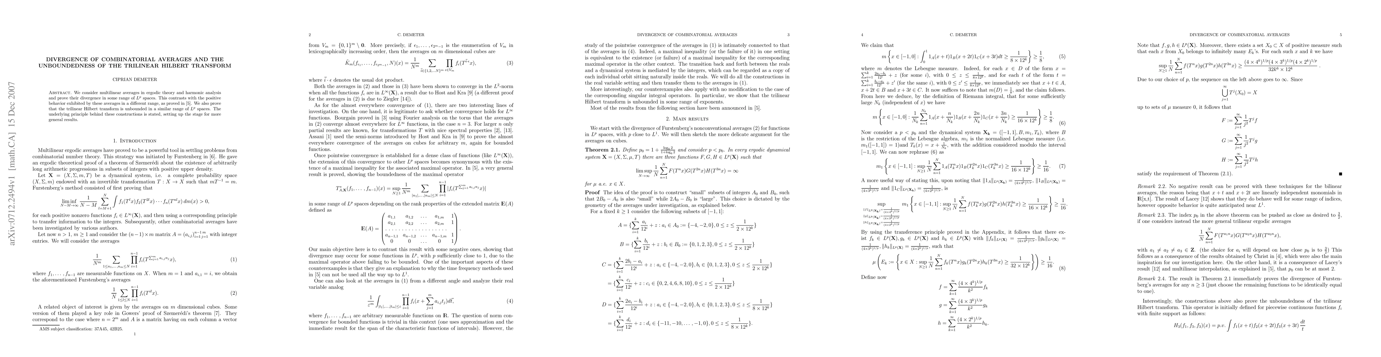 This research paper shows that certain multilinear averages diverge in a range of $L^p$ spaces when p is close to 1, and it also proves the trilinear Hilbert transform is unbounded in these same spaces.