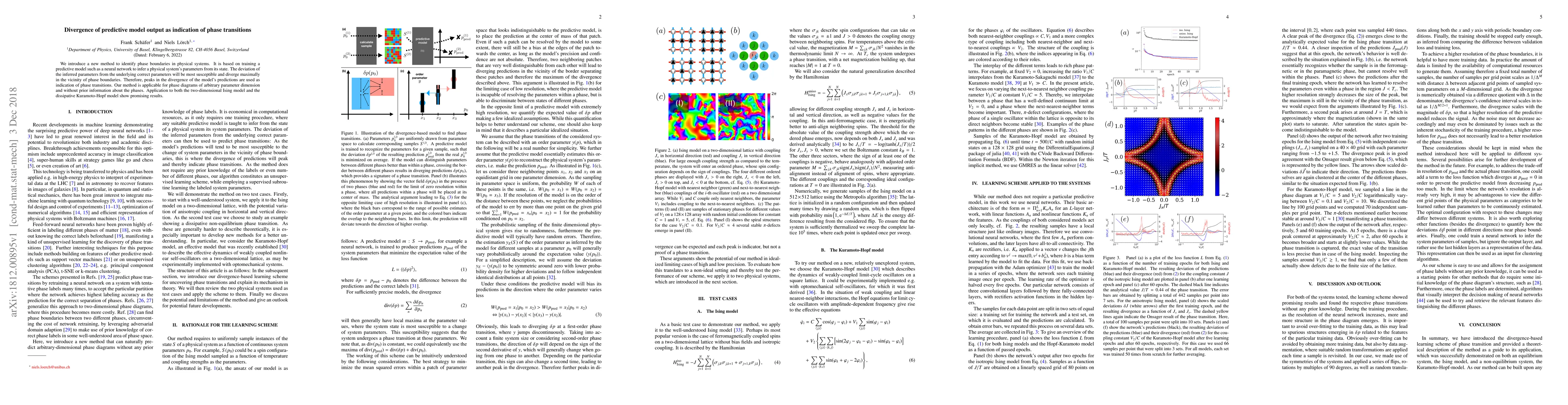 We introduce a new method to identify phase boundaries in physical systems. It is based on training a predictive model such as a neural network to infer a physical system's parameters from its state. The deviation of the inferred parameters from the underlying correct parameters will be most susceptible and diverge maximally in the vicinity of phase boundaries. Therefore, peaks in the divergence of the model's predictions are used as indication of phase transitions. Our method is applicable for phase diagrams of arbitrary parameter dimension and without prior information about the phases. Application to both the two-dimensional Ising model and the dissipative Kuramoto-Hopf model show promising results.