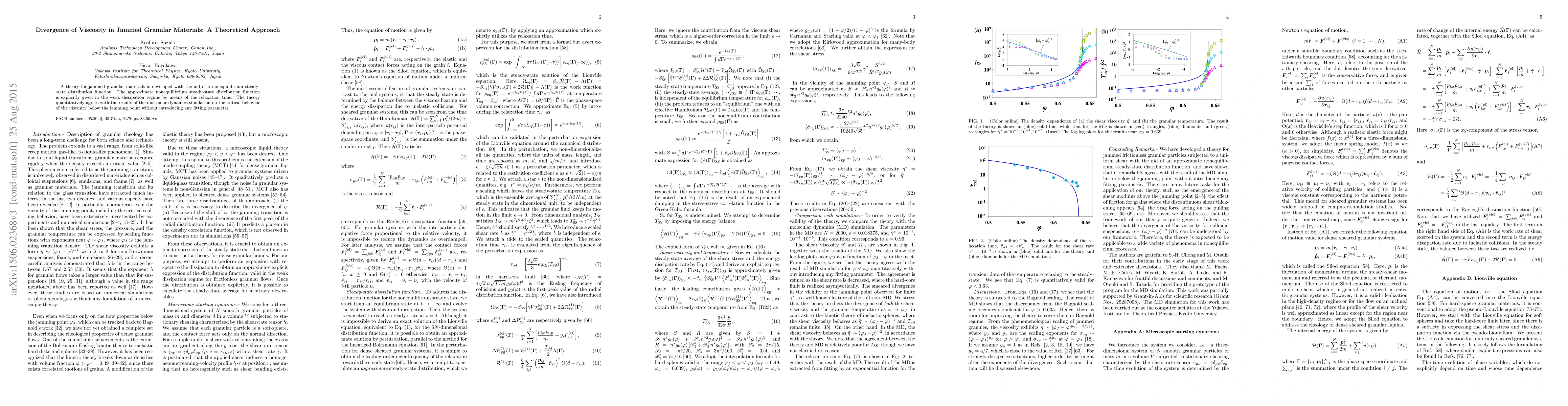 Researchers developed a theoretical framework for jammed granular materials that accurately predicts viscosity without requiring fitting parameters. The model agrees with molecular dynamics simulations on the critical behavior of viscosity below the jamming point.