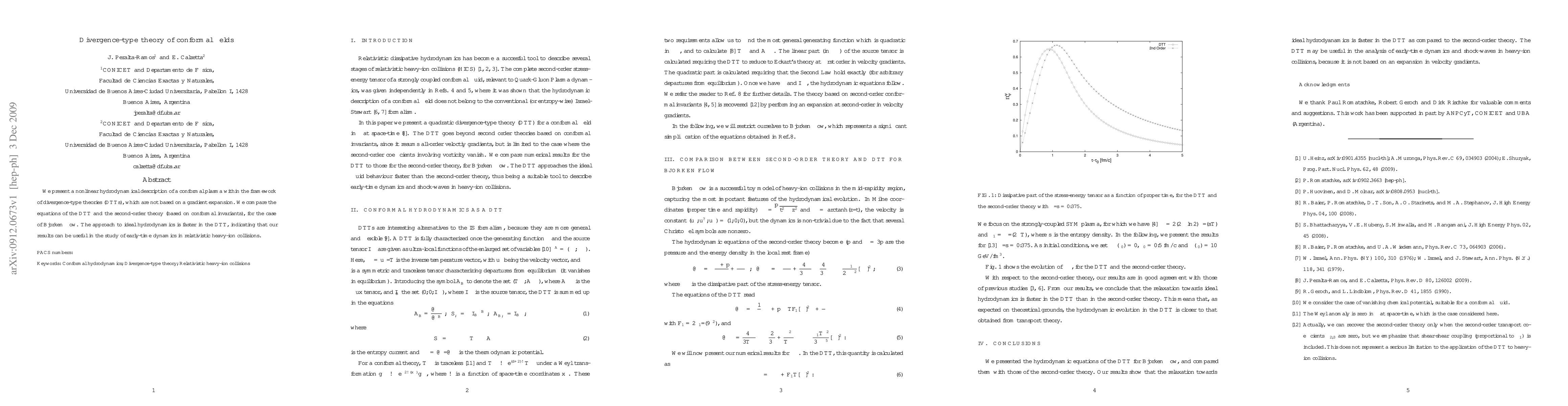 We present a nonlinear hydrodynamical description of a conformal plasma within the framework of divergence-type theories (DTTs), which are not based on a gradient expansion. We compare the equations of the DTT and the second-order theory (based on conformal invariants), for the case of Bjorken ow. The approach to ideal hydrodynamics is faster in the DTT, indicating that our results can be useful in the study of early-time dynamics in relativistic heavy-ion collisions.