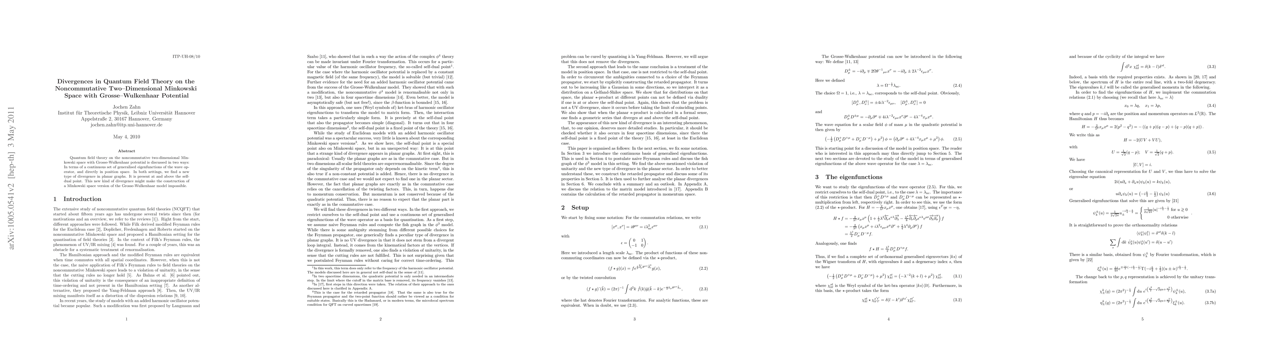 Quantum field theory on the noncommutative two-dimensional Minkowski space with Grosse-Wulkenhaar potential is discussed in two ways: In terms of a continuous set of generalised eigenfunctions of the wave operator, and directly in position space. In both settings, we find a new type of divergence in planar graphs. It is present at and above the self-dual point. This new kind of divergence might make the construction of a Minkowski space version of the Grosse-Wulkenhaar model impossible.