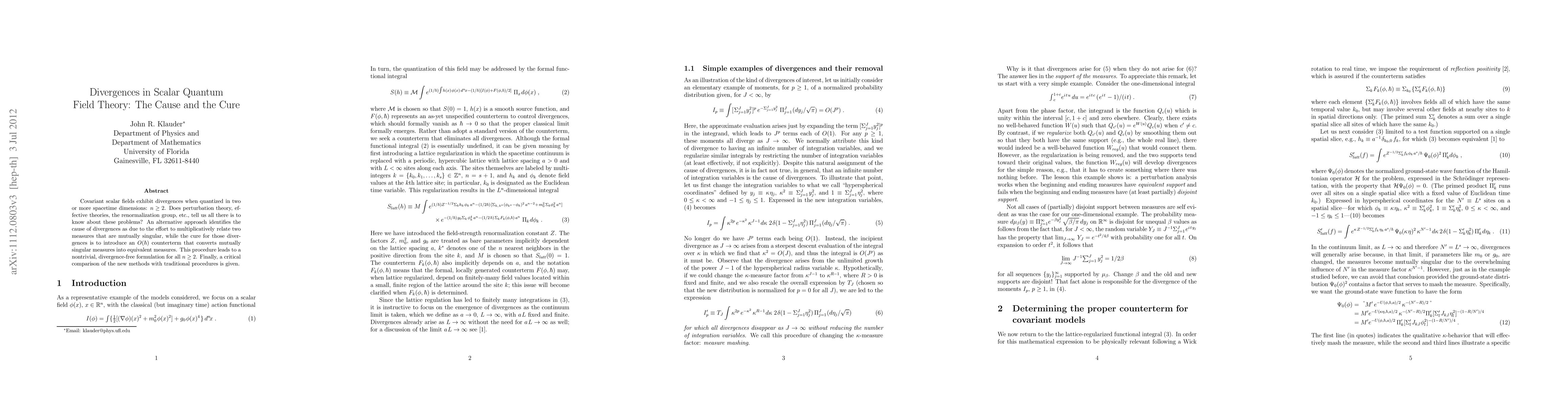 Covariant scalar fields exhibit divergences when quantized in two or more spacetime dimensions: n \geg 2. Does perturbation theory, effective theories, the renormalization group, etc., tell us all there is to know about these problems? An alternative approach identifies the cause of divergences as due to the effort to multiplicatively relate two measures that are mutually singular, while the cure for those divergences is to introduce an O(\hbar) counterterm that converts mutually singular measures into equivalent measures. This procedure leads to a nontrivial, divergence-free formulation for all n \geq 2. Finally, a critical comparison of the new methods with traditional procedures is given.