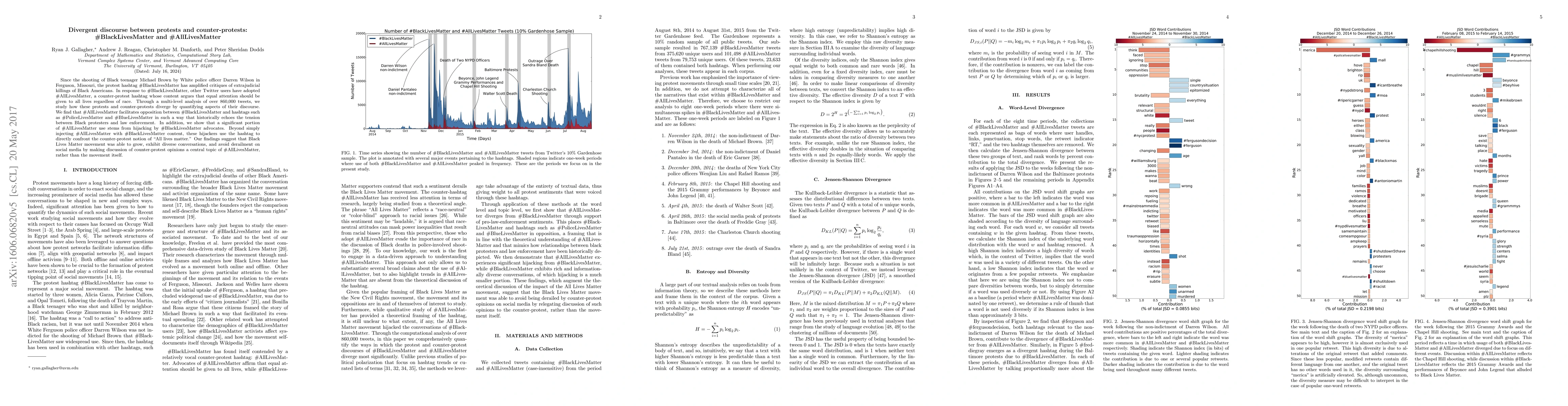 Since the shooting of Black teenager Michael Brown by White police officer Darren Wilson in Ferguson, Missouri, the protest hashtag #BlackLivesMatter has amplified critiques of extrajudicial killings of Black Americans. In response to #BlackLivesMatter, other Twitter users have adopted #AllLivesMatter, a counter-protest hashtag whose content argues that equal attention should be given to all lives regardless of race. Through a multi-level analysis of over 860,000 tweets, we study how these protests and counter-protests diverge by quantifying aspects of their discourse. We find that #AllLivesMatter facilitates opposition between #BlackLivesMatter and hashtags such as #PoliceLivesMatter and #BlueLivesMatter in such a way that historically echoes the tension between Black protesters and law enforcement. In addition, we show that a significant portion of #AllLivesMatter use stems from hijacking by #BlackLivesMatter advocates. Beyond simply injecting #AllLivesMatter with #BlackLivesMatter content, these hijackers use the hashtag to directly confront the counter-protest notion of "All lives matter." Our findings suggest that Black Lives Matter movement was able to grow, exhibit diverse conversations, and avoid derailment on social media by making discussion of counter-protest opinions a central topic of #AllLivesMatter, rather than the movement itself.