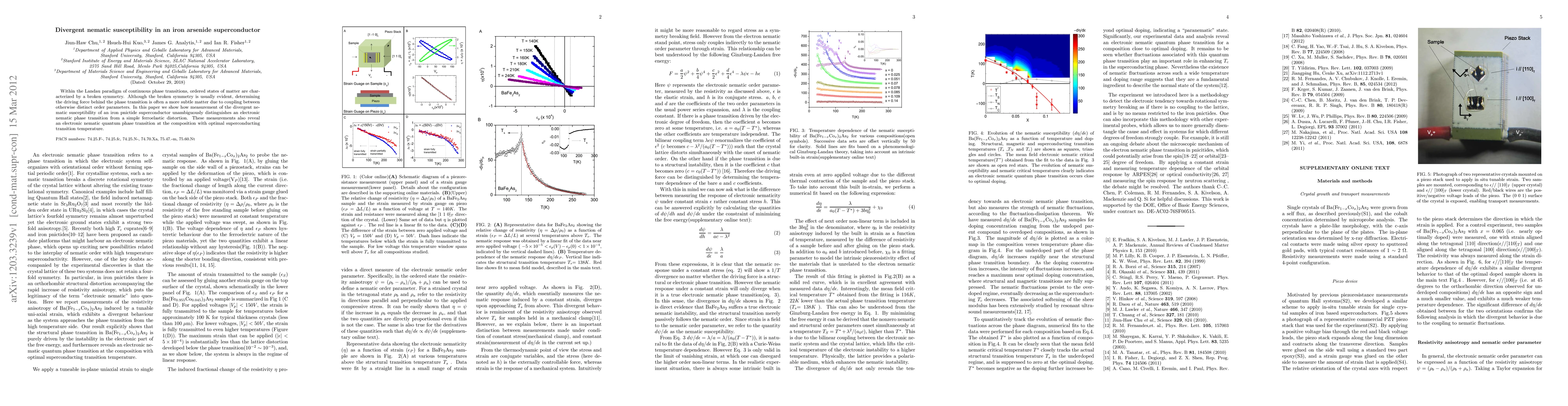 This paper demonstrates that measuring divergent nematic susceptibility in an iron arsenide superconductor can distinguish between an electronic nematic phase transition and a ferroelastic distortion, revealing a quantum phase transition at the composition with optimal superconductivity.