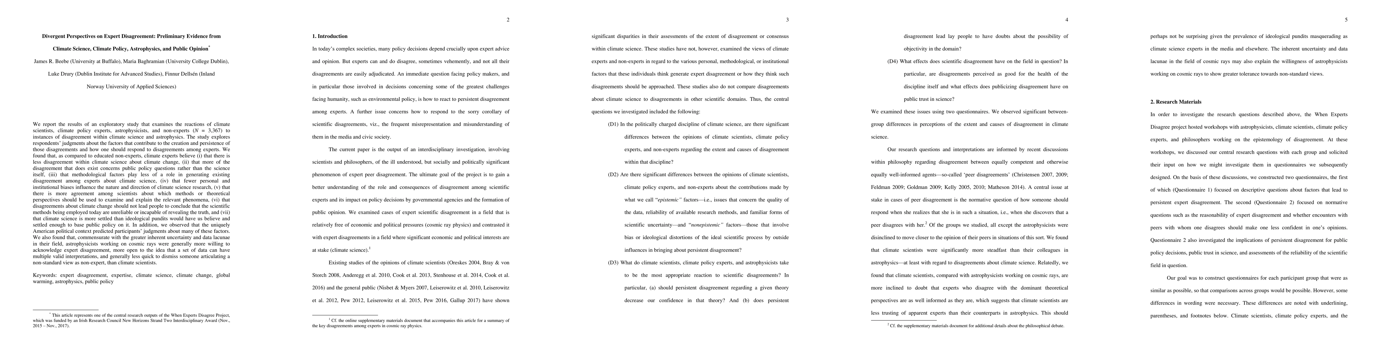 A study of 3,367 individuals found that climate experts believe methodological factors play a smaller role in disagreements than commonly thought, while astrophysicists were more open to acknowledging expert disagreement.