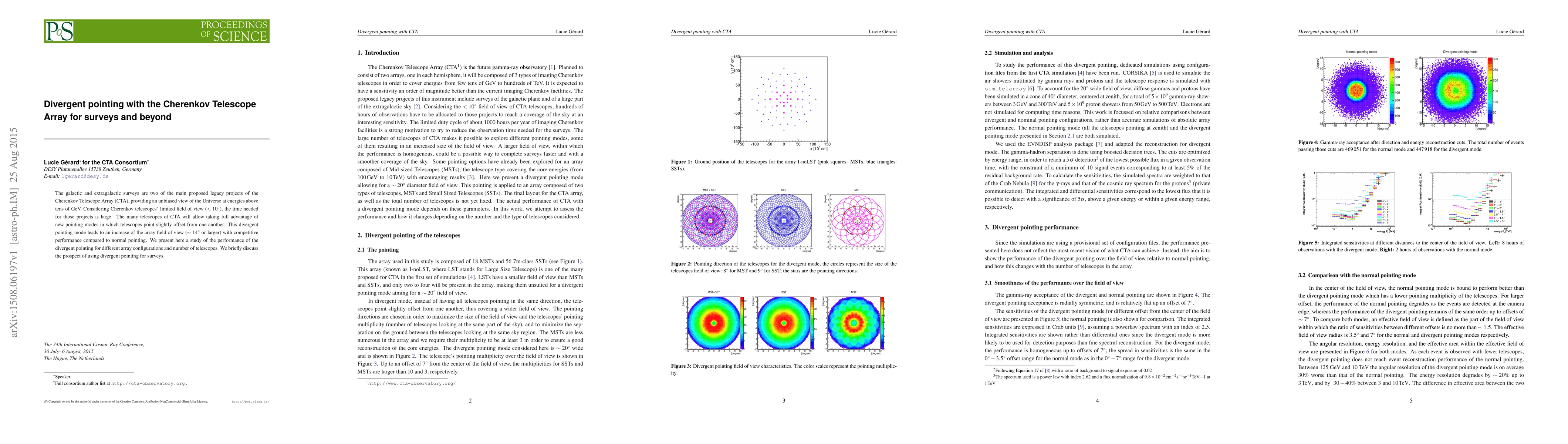 The Cherenkov Telescope Array (CTA) aims to conduct extensive galactic and extragalactic surveys using divergent pointing modes, which increase the array's field of view to around 14° or more while maintaining competitive performance. This study evaluates the effectiveness of divergent pointing across various CTA configurations.