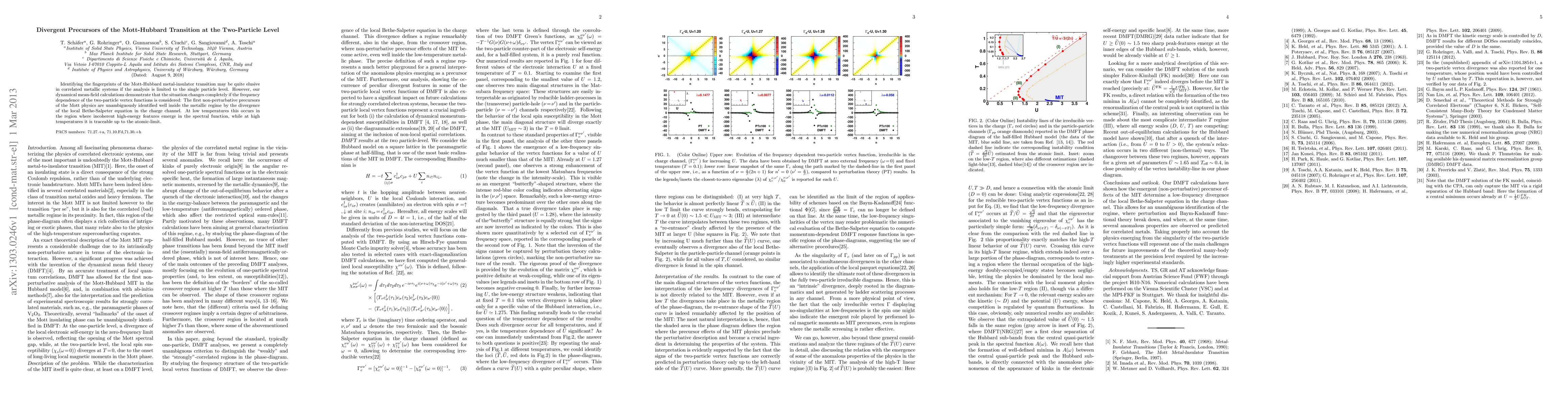 Identifying the fingerprints of the Mott-Hubbard metal-insulator transition may be quite elusive in correlated metallic systems if the analysis is limited to the single particle level. However, our dynamical mean-field calculations demonstrate that the situation changes completely if the frequency dependence of the two-particle vertex functions is considered: The first non-perturbative precursors of the Mott physics are unambiguously identified well inside the metallic regime by the divergence of the local Bethe-Salpeter equation in the charge channel. At low temperatures this occurs in the region where incoherent high-energy features emerge in the spectral function, while at high temperatures it is traceable up to the atomic-limit.