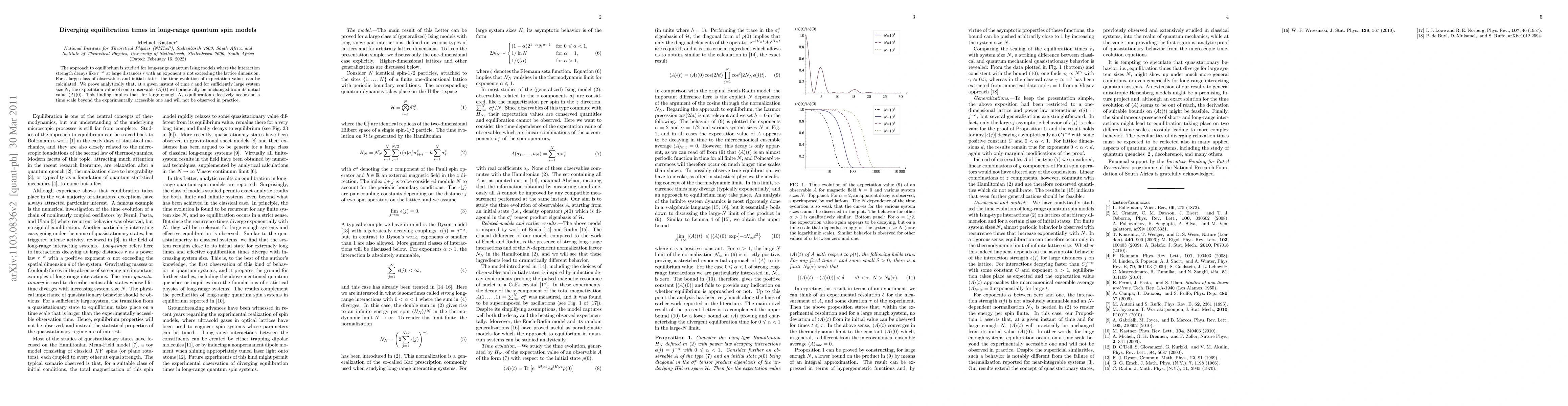 The approach to equilibrium is studied for long-range quantum Ising models where the interaction strength decays like r^{-\alpha} at large distances r with an exponent $\alpha$ not exceeding the lattice dimension. For a large class of observables and initial states, the time evolution of expectation values can be calculated. We prove analytically that, at a given instant of time t and for sufficiently large system size N, the expectation value of some observable (t) will practically be unchanged from its initial value (0). This finding implies that, for large enough N, equilibration effectively occurs on a time scale beyond the experimentally accessible one and will not be observed in practice.