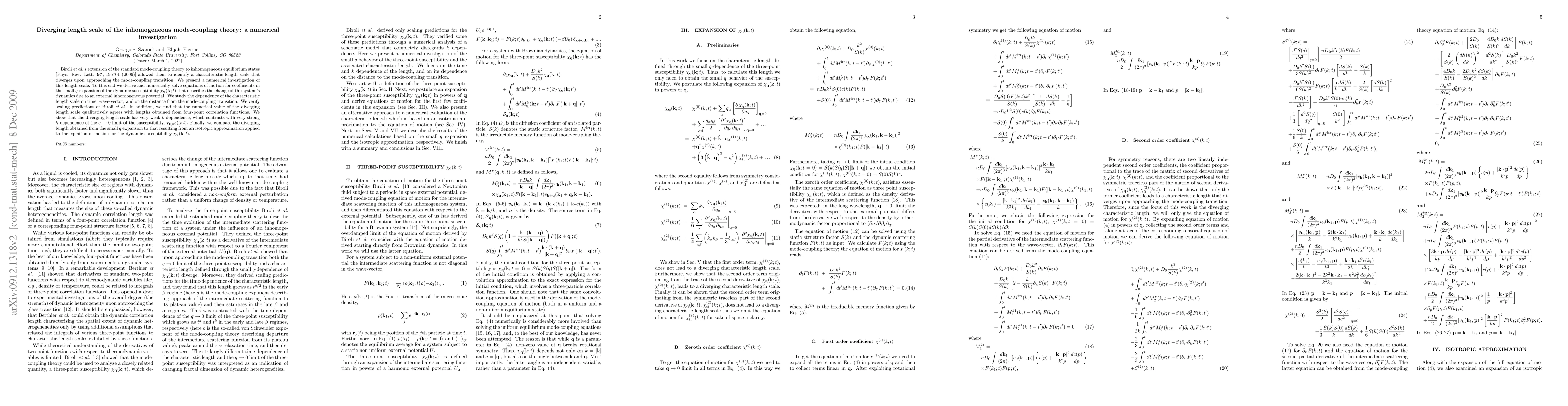 Biroli et al.'s extension of the standard mode-coupling theory to inhomogeneous equilibrium states [Phys. Rev. Lett. 97, 195701 (2006)] allowed them to identify a characteristic length scale that diverges upon approaching the mode-coupling transition. We present a numerical investigation of this length scale. To this end we derive and numerically solve equations of motion for coefficients in the small q expansion of the dynamic susceptibility $\chi_{\mathbf{q}}(\mathbf{k};t)$ that describes the change of the system's dynamics due to an external inhomogeneous potential. We study the dependence of the characteristic length scale on time, wave-vector, and on the distance from the mode-coupling transition. We verify scaling predictions of Biroli et al. In addition, we find that the numerical value of the diverging length scale qualitatively agrees with lengths obtained from four-point correlation functions. We show that the diverging length scale has very weak k dependence, which contrasts with very strong $k$ dependence of the $q\to 0$ limit of the susceptibility, $\chi_{\mathbf{q}=0}(\mathbf{k};t)$. Finally, we compare the diverging length obtained from the small q expansion to that resulting from an isotropic approximation applied to the equation of motion for the dynamic susceptibility $\chi_{\mathbf{q}}(\mathbf{k};t)$.