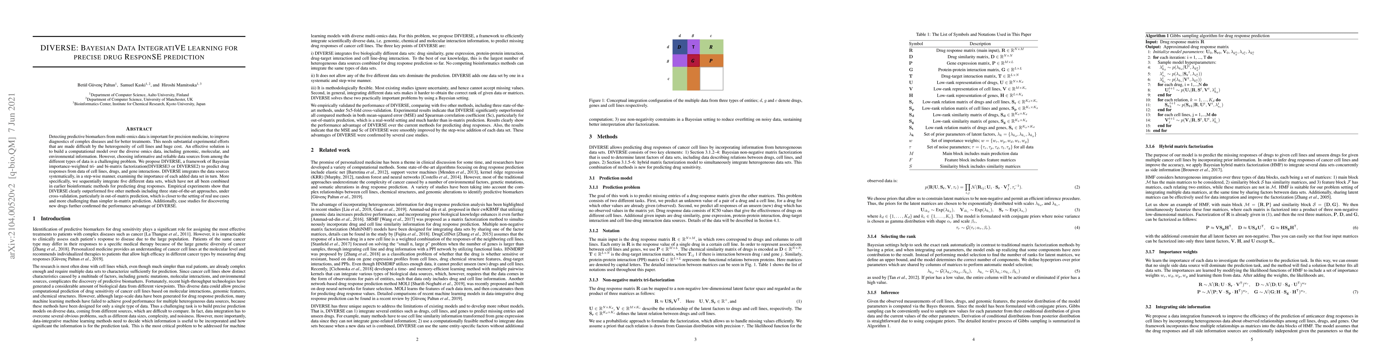 This research paper introduces DIVERSE, a framework that uses Bayesian importance-weighted matrix factorization to predict drug responses from diverse multi-omics data, outperforming other methods in cross-validation experiments.