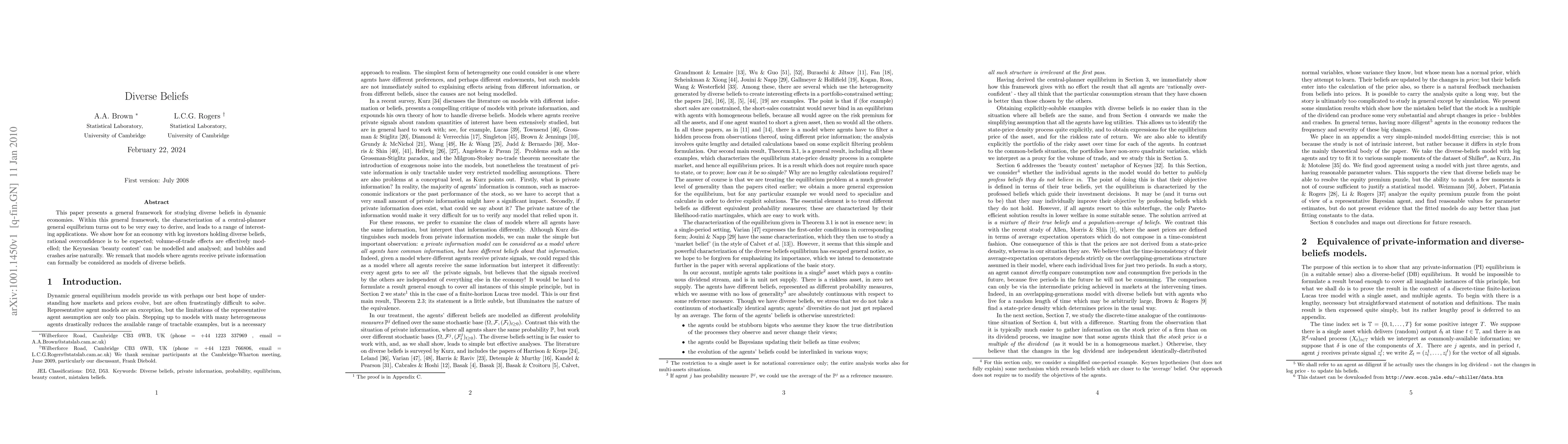 The paper develops a general framework for analyzing diverse beliefs in dynamic economies, deriving a central-planner general equilibrium and exploring applications such as rational overconfidence, volume-of-trade effects, Keynesian beauty contest, and bubbles and crashes.