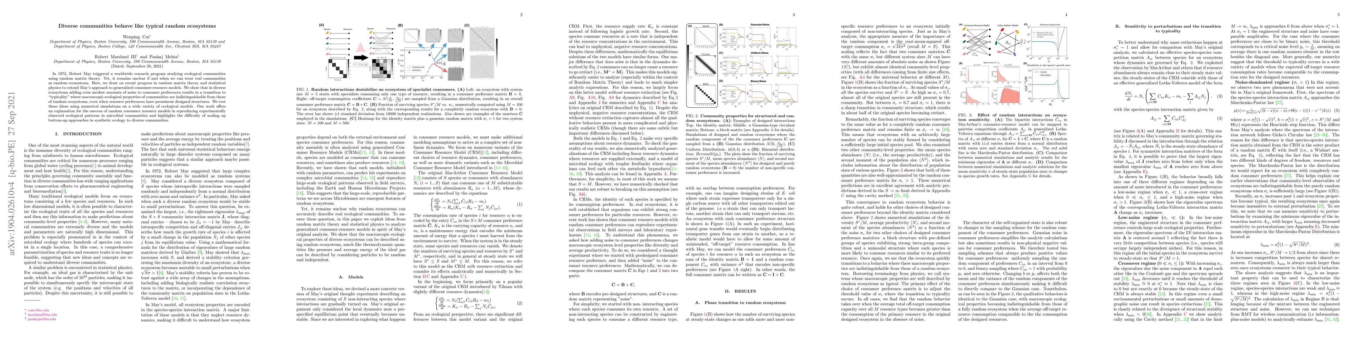 Diverse communities exhibit similar macroscopic properties to random ecosystems when noise is added to consumer preferences. This finding has implications for understanding the behavior of complex systems in ecology.