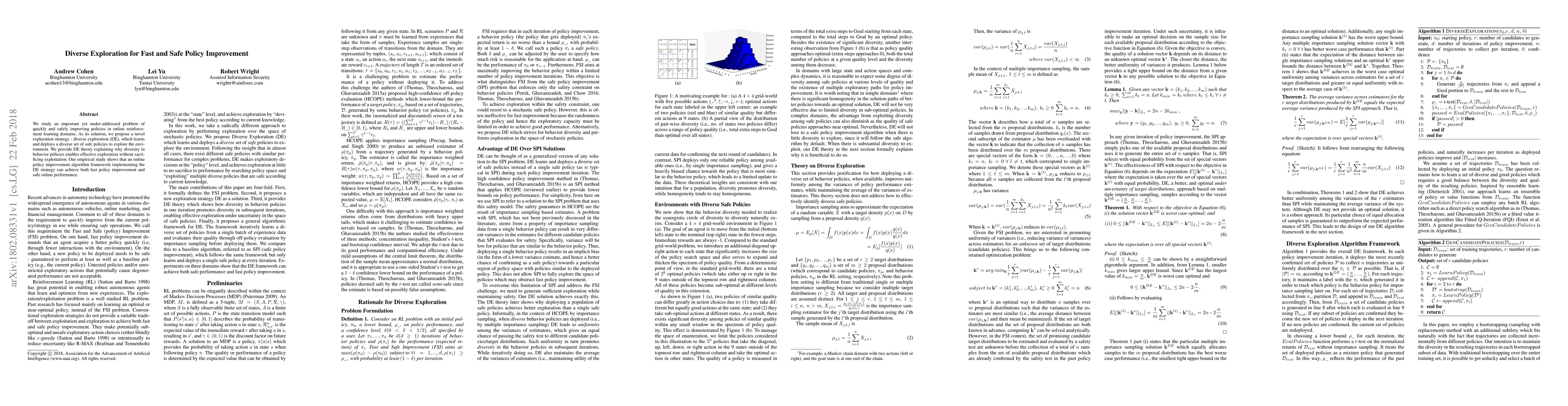 This paper proposes a novel diverse exploration (DE) strategy to quickly and safely improve policies in online reinforcement learning. DE leverages a diverse set of safe policies to enhance exploration without compromising exploitation, supported by theoretical explanations and empirical evidence of its effectiveness.